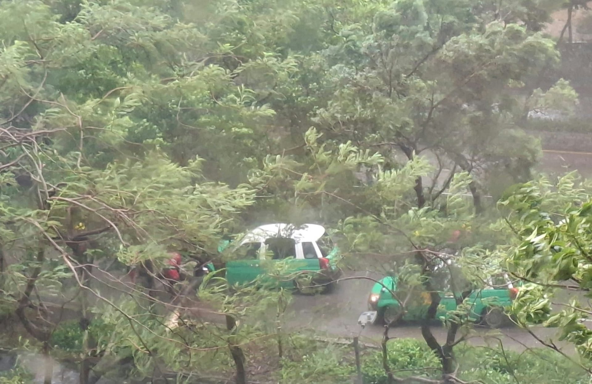 【點新聞報道】超強颱風「樺加沙」正襲擊香港,天氣持續惡劣。今日(24日)上午,警方接獲一名的士司機報案,指接載乘客駛至粉嶺百和路時,被一棵樹砸中,導致車輛不能繼續行駛。