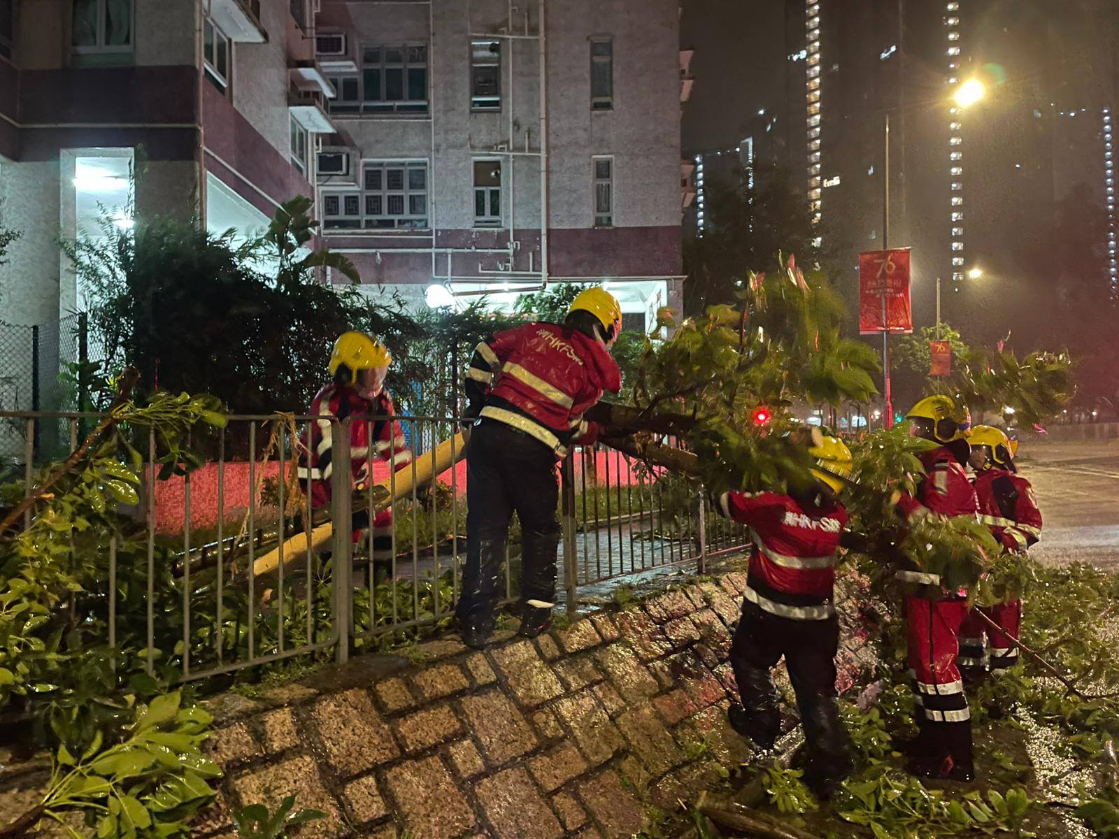 此外,截至今早8時正,消防處接獲多個求助個案,當中包括超過130宗緊急塌樹事故以及超過90宗升降機事故。正在全力處理中,務求保障市民的安全。同時亦再次呼籲市民留在室內安全地方、密切留意最新天氣消息、若遇到緊急情況,請立即致電999求助。