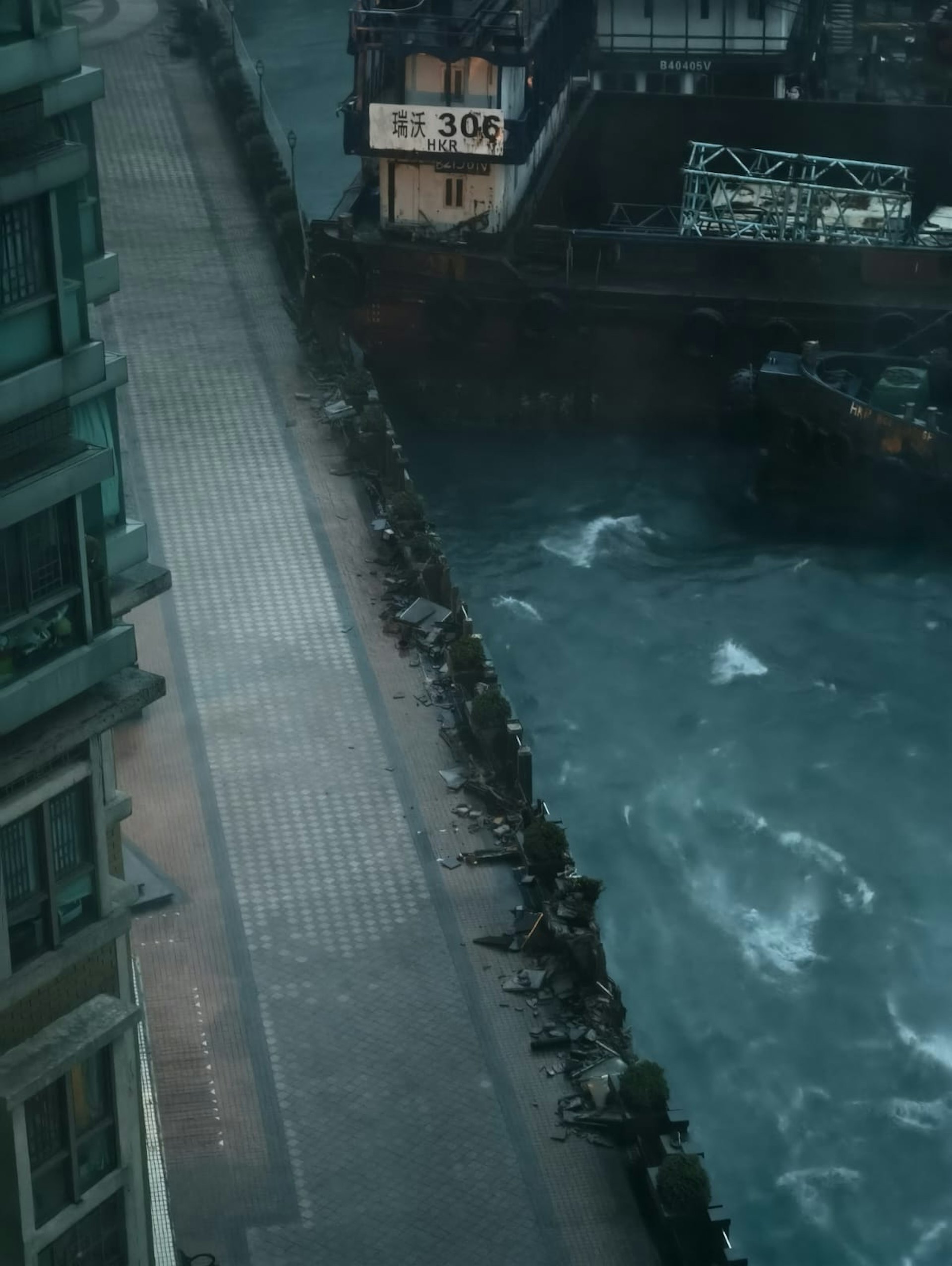 【點新聞報道】十號颶風信號仍然生效,紅磡海逸豪園對出的海面,一艘躉船在風暴之下懷疑被強風吹到撞岸,岸邊的欄桿和石壆被毀,碎片散落跌在海濱行人徑。