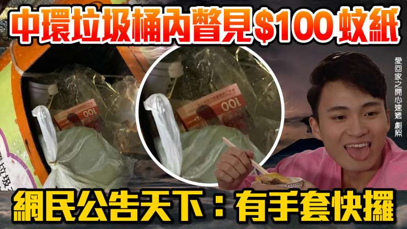 【點新聞報道】有港男近日行經中環街頭一個垃圾桶時,發現垃圾堆中竟有一張100元紙幣,於是立即發文話「大家有手套快攞」。帖文引來網民熱議,有人勸說不要貪心,有人就話幾大都要執。
