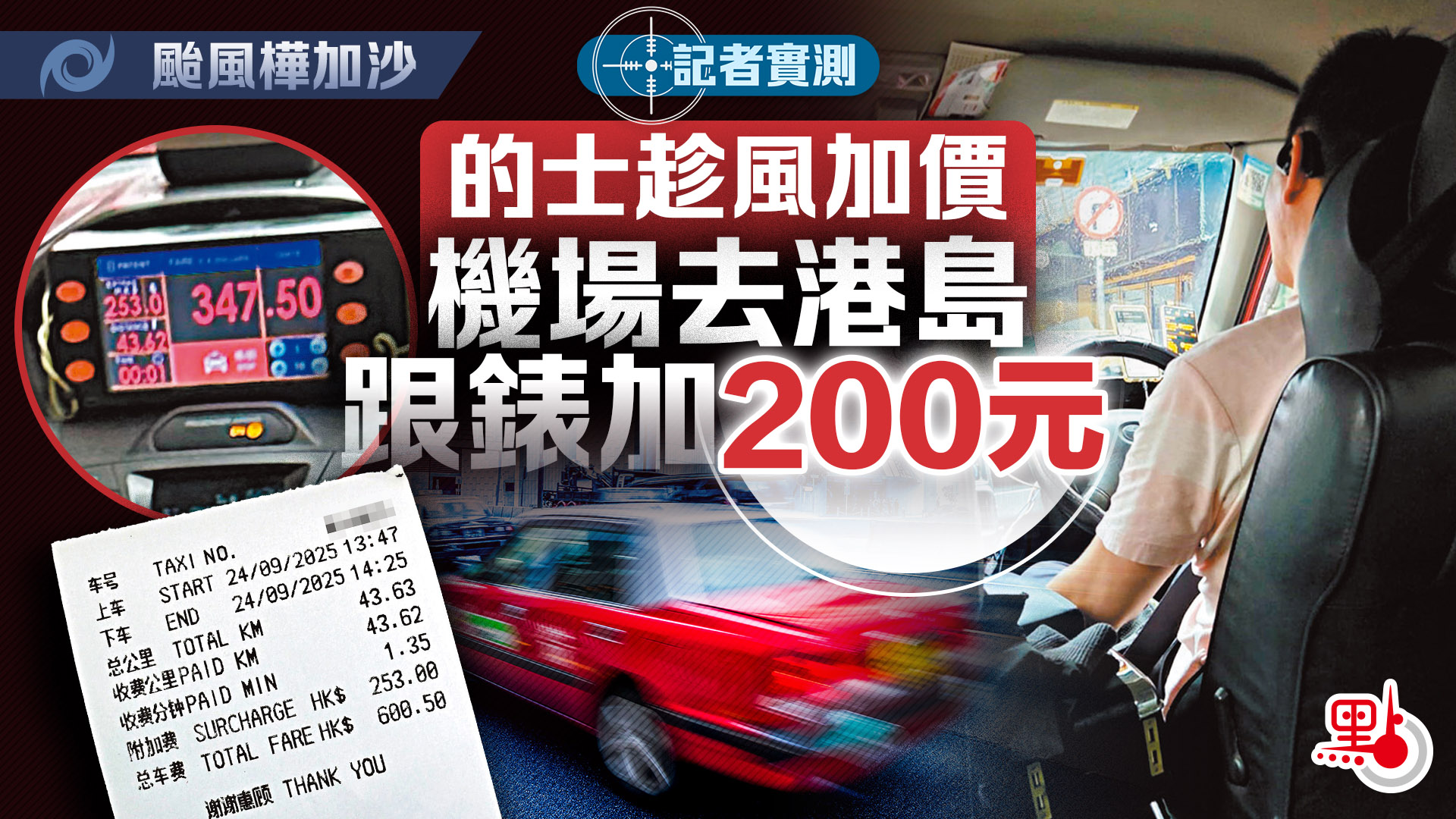 記者實測|的士趁風加價 機場去港島跟錶加200元