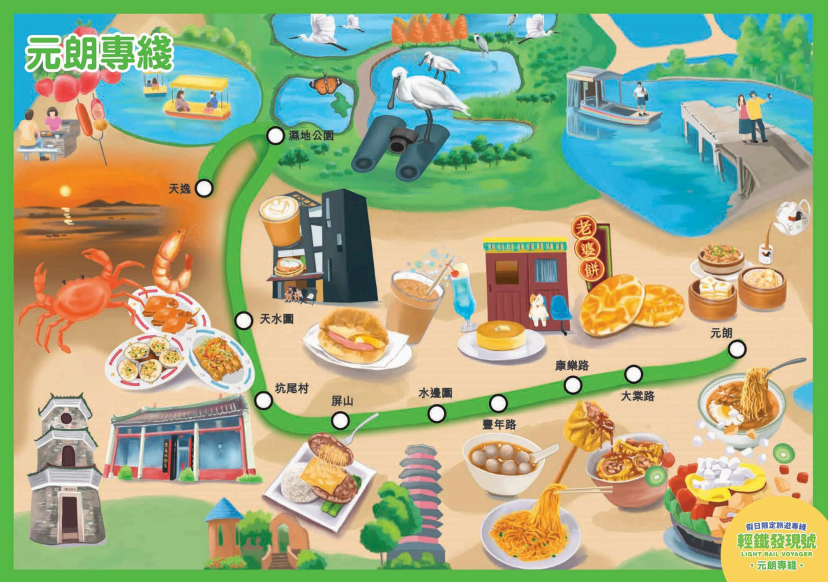 【點新聞報道】港鐵明天(28日)起推出「輕鐵發現號–元朗專綫」,逢周末及公眾假期,穿梭元朗至天水圍之間10個特選輕鐵站。專綫列車的車身及車廂內繪畫元朗特色食品及區內景點。
