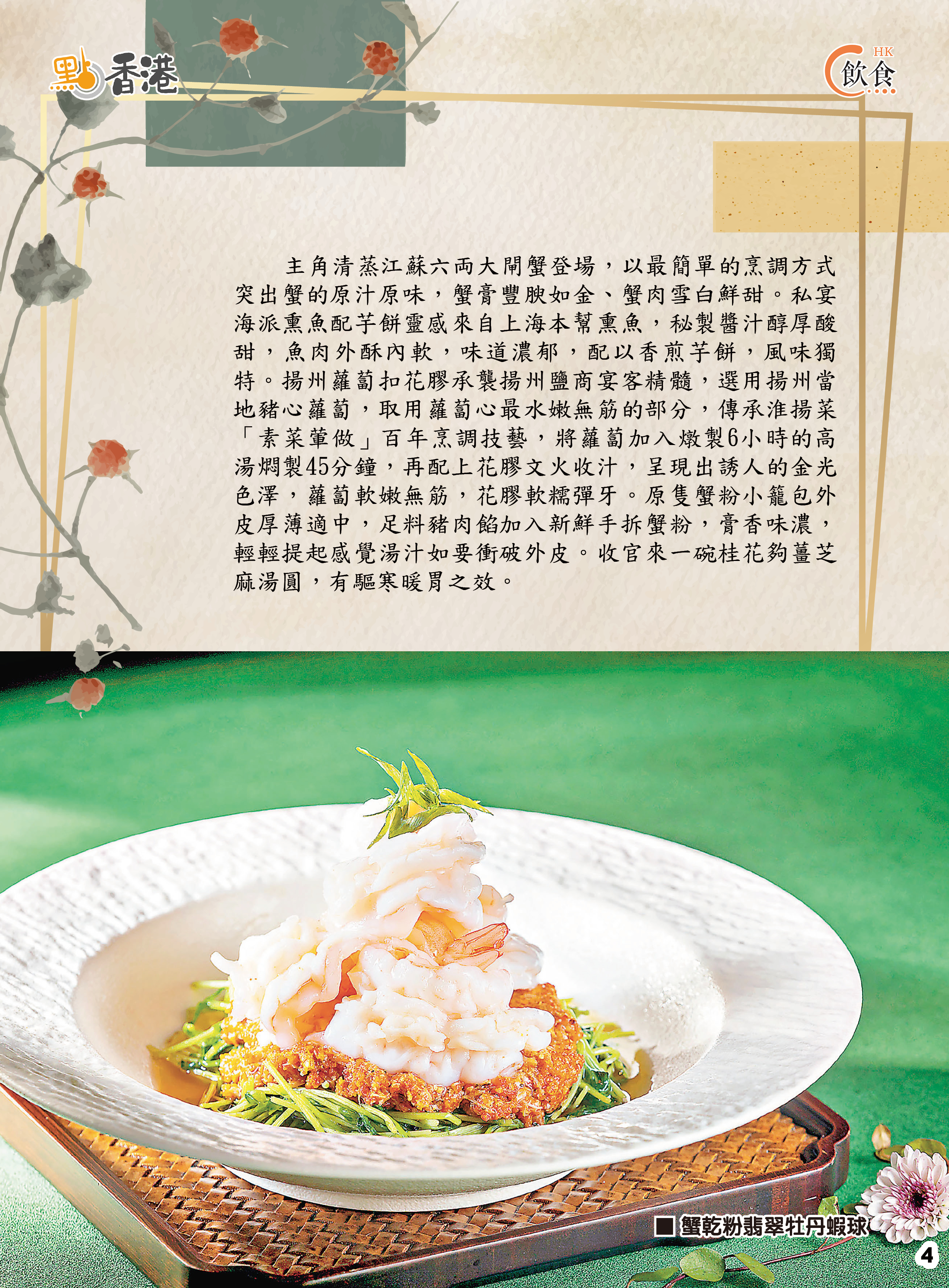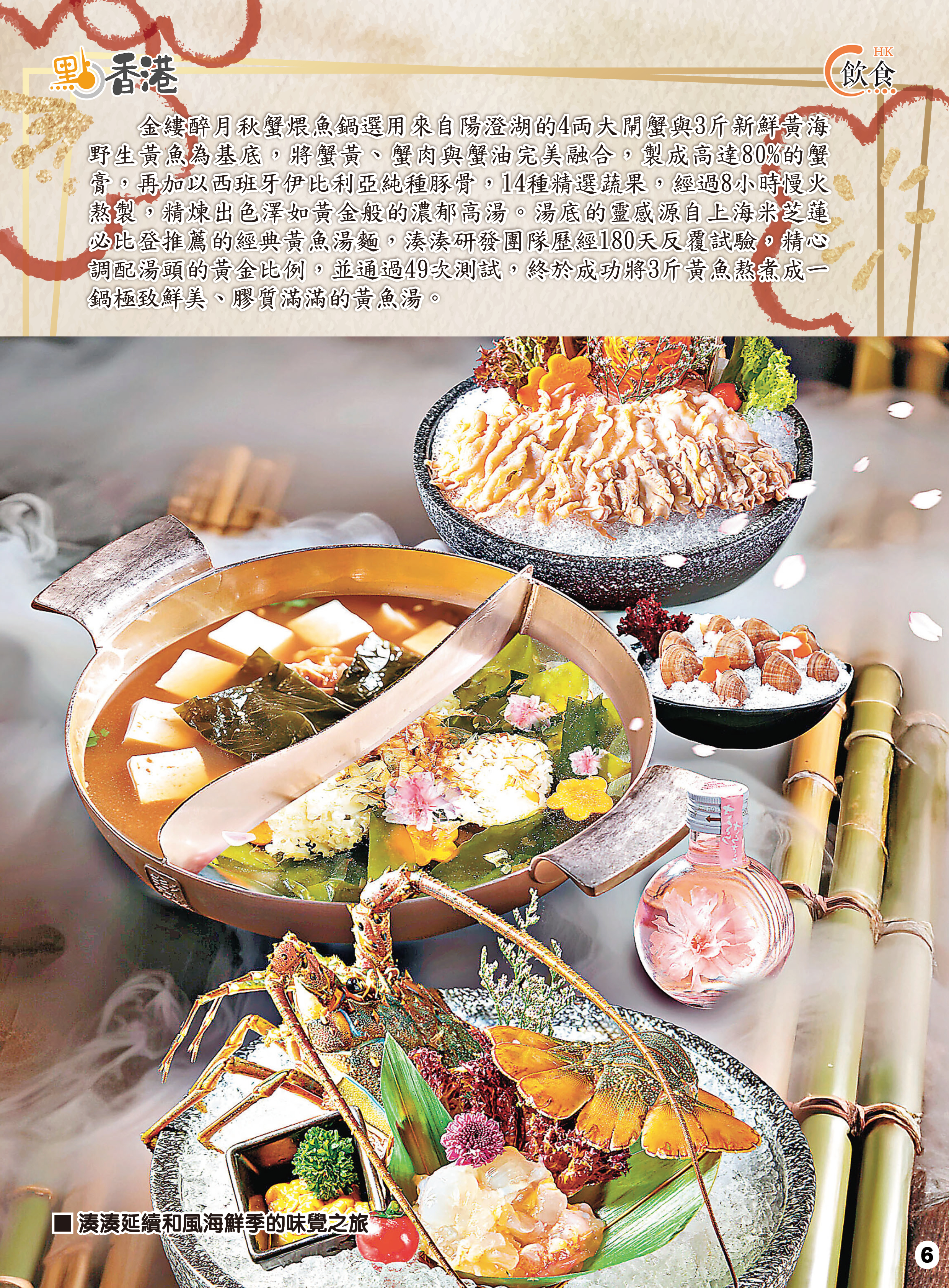 金秋盛宴,蟹香四溢。个園竹語」匠心呈獻六両大閘蟹八味金秋宴,拆蟹服務貼心加持,蟹膏蟹粉入饌層次豐富;湊湊火鍋則以東方美人茶湯鍋與秋蟹煨魚鍋演繹詩意秋味,桂花梨香、蟹膏黃魚交織出金秋的溫潤與奢華,為味蕾添上季節的詩篇。