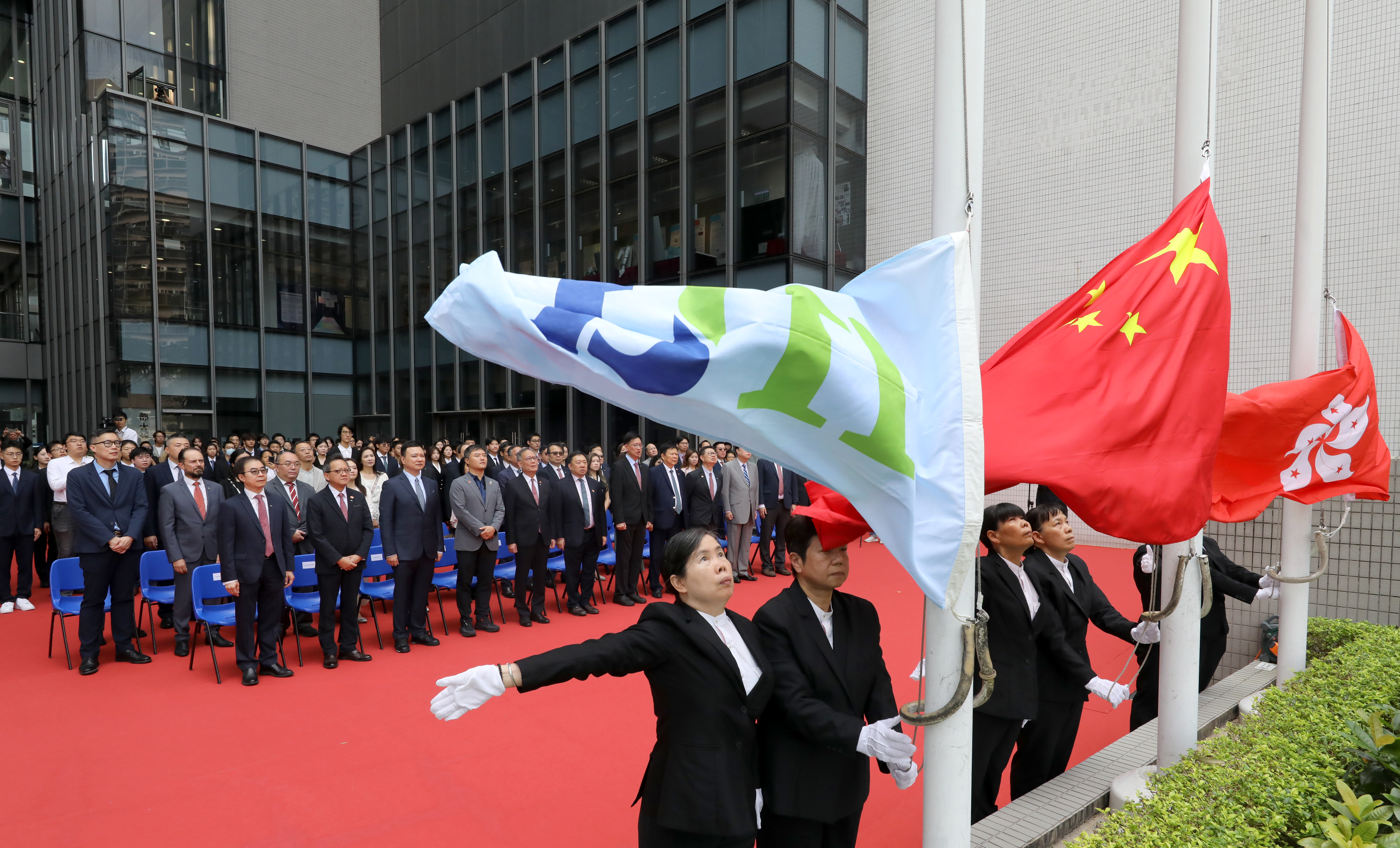 香港都會大學(都大)今早於校園舉行升旗典禮,慶祝中華人民共和國成立76周年。都大校董會主席黃天祥、校長林群聲,連同其他校董會成員、大學管理層、教職員及學生等近200人出席儀式。