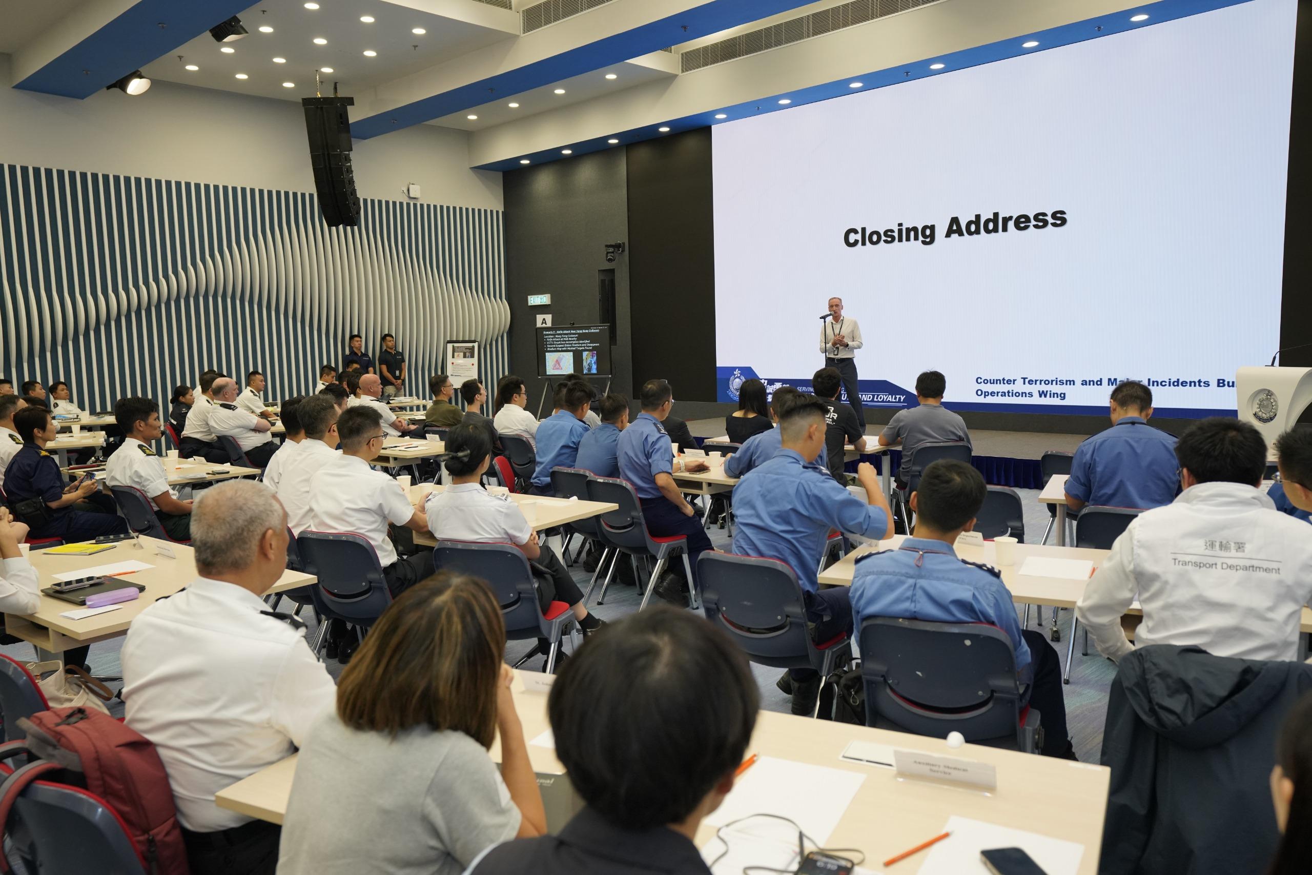 警務處在過去一年已順利完成十五運會及殘特奧會所有場地的跨部門反恐及重大事故演習。是次桌上演練亦總結過往演習及測試賽的經驗,集中優化競賽流程、強化安全保障措施,並為各比賽場地及相關賽事安排最後階段的測試及演練,確保各項安排更臻完善。