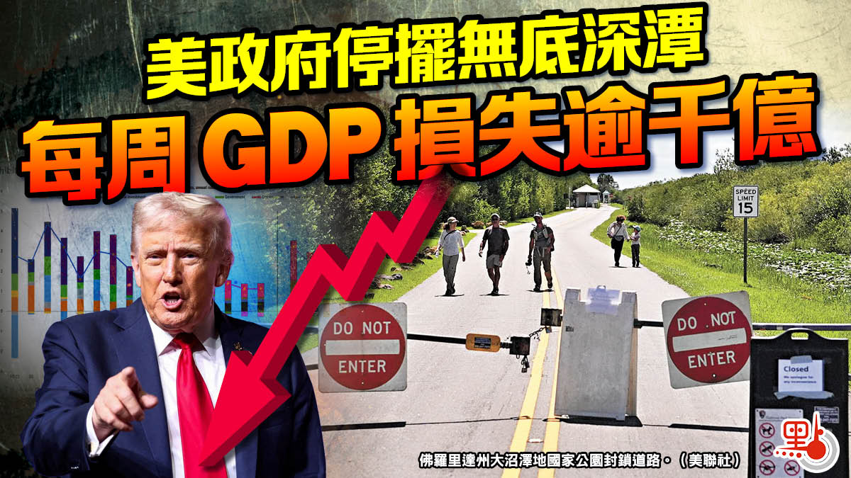 美國聯邦政府因國會共和黨與民主黨人未能就臨時撥款法案達成共識,自當地時間周三(10月1日)凌晨起陷入停擺。參議院共和黨領袖圖恩表示,預料本周內難以完成表決,政府停擺狀況很可能持續至下周。政府停擺為美國經濟帶來重大損失,一份研究報告稱,停擺每周可造成高達70億美元(約545億港元)經濟損失,另一份白宮內部備忘錄更稱每周國內生產總值(GDP)將損失達150億美元(約1,168億港元)。