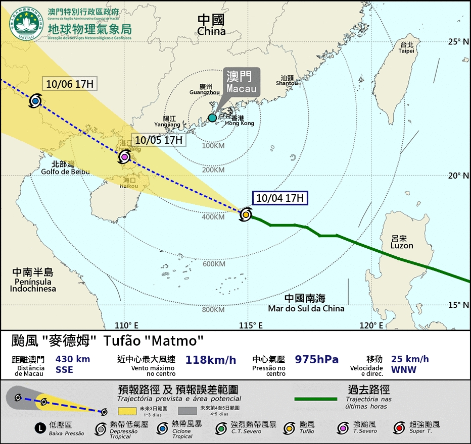 颱風麥德姆|澳門發三號波 氣象局料凌晨至明早最接近澳門