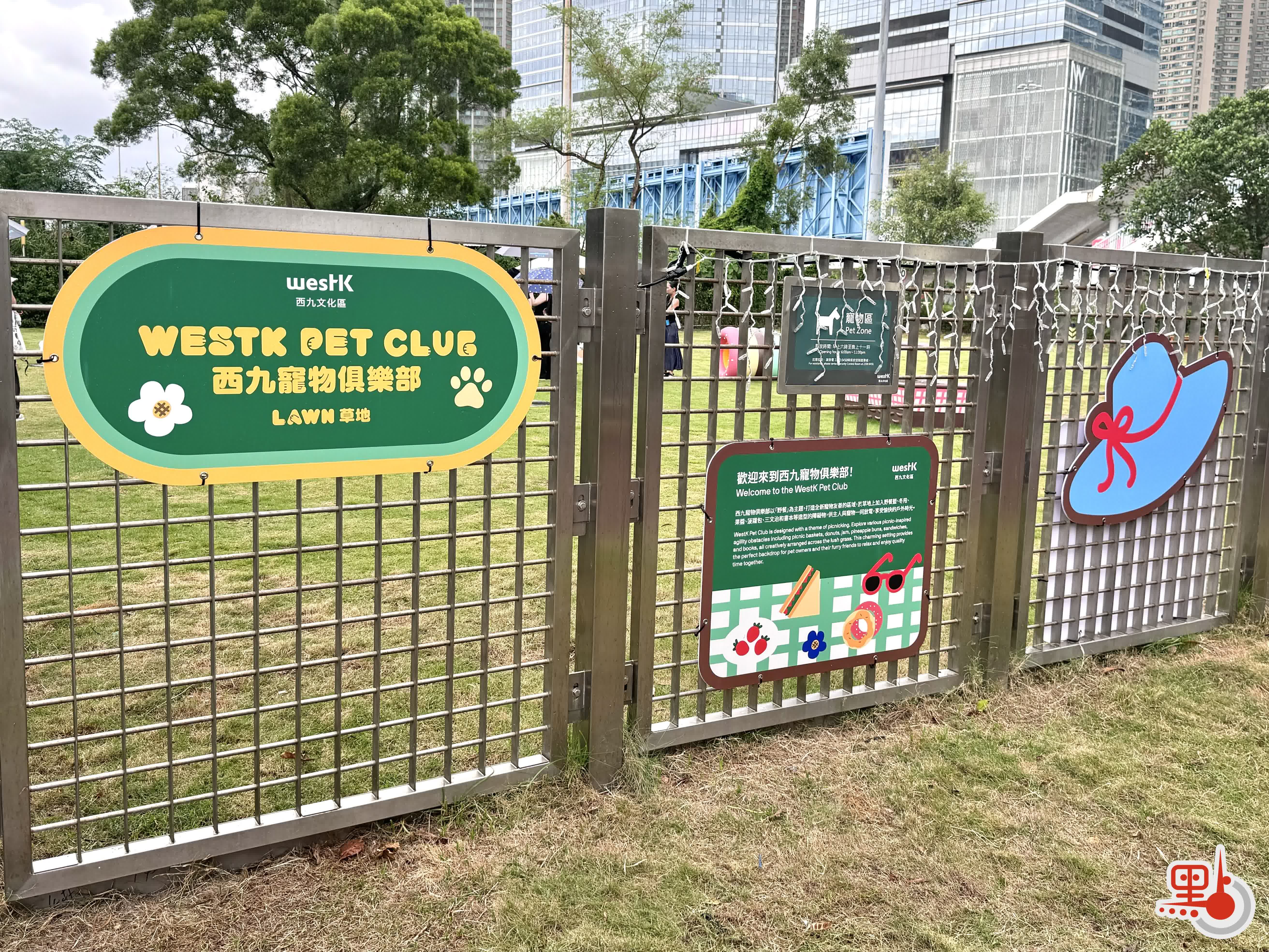 據介紹,經全面翻新後,寵物俱樂部設計上融入野餐元素,劃分為「草地區」與「跑道區」兩大區域,並設有多項爬架和跳欄等障礙物。為全面照顧人寵所需,西九設有眾多便利設施,包括可生物降解撿便袋及寵物除臭滅菌噴霧,更特設寵物用品自動販賣機,以便主人隨時為寵物補給必需品。西九同時推出寵物單車租借服務,為大眾及遊客提供多元化的騎行選擇。