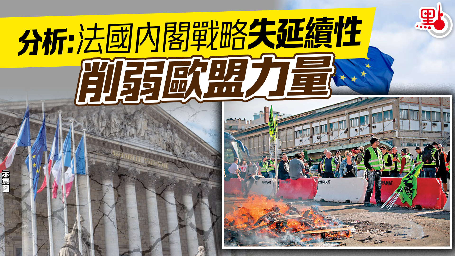 分析認為,在廣泛的地緣政治背景下,法國現時暴露的內憂外患,變相削弱了整個歐盟的實力。一個內部分裂的國家,難以成為領導歐盟的核心選擇。「馬克龍面臨的挑戰不再只是管理政府,而是維護法國作為歐洲戰略領導者的信譽,歐洲承受不起作為核心的法國正在弱化。」