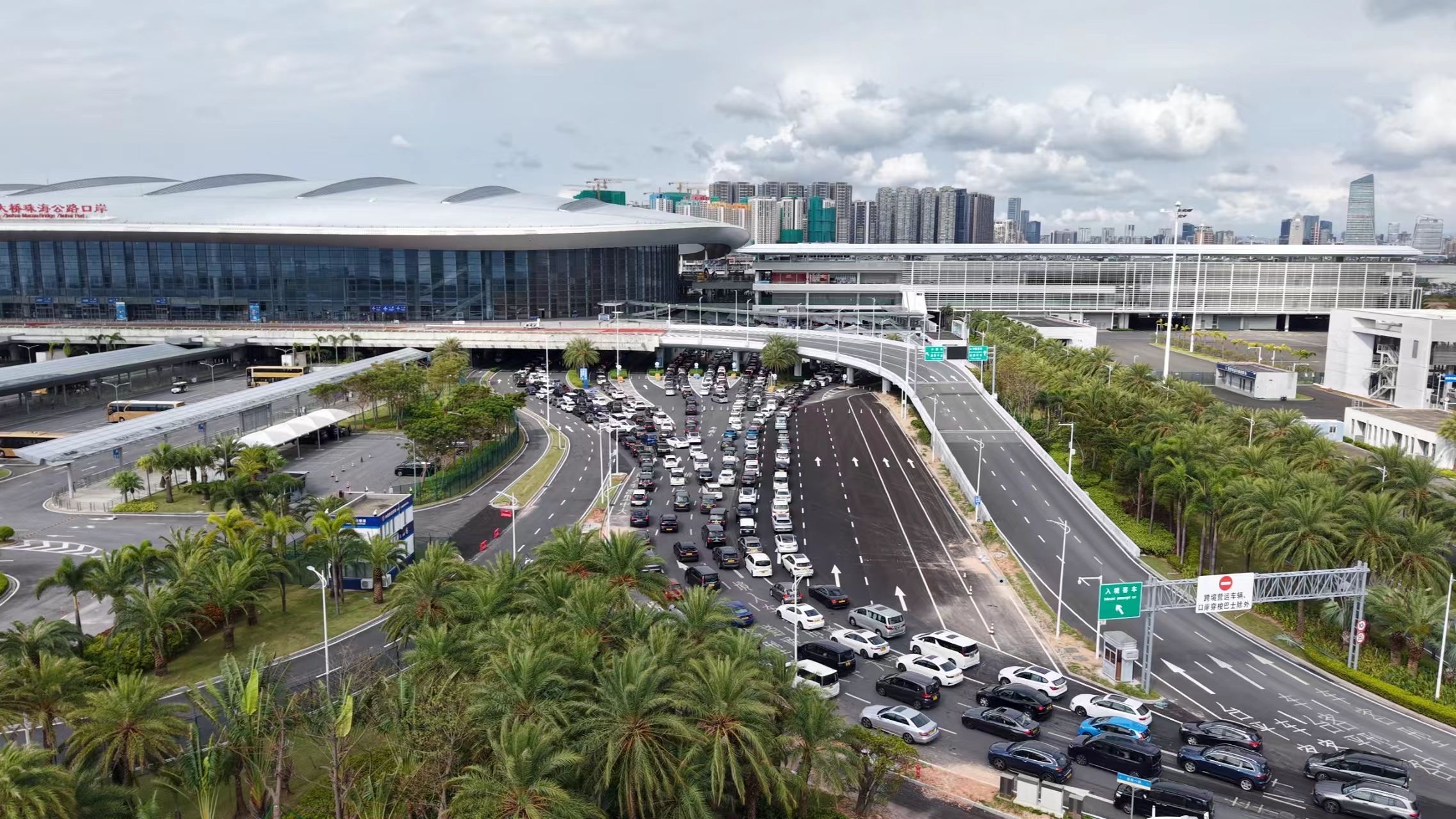 港珠澳大橋邊檢站相關負責人介紹,「10月5日,珠海市受颱風『麥德姆』影響出現大風降雨,口岸車輛通關未受明顯影響,當日車流量超過2.3萬輛次,口岸單日車流量已連續5天超過2萬輛次。」