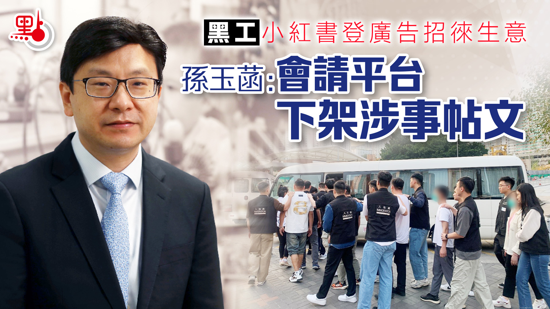 針對近年有不法分子透過小紅書等社交平台招攬生意後安排黑工來港提供服務,孫玉菡表示,如發現有人利用社交平台或即時通訊軟件組織、安排、慫恿市民干犯聘用非法勞工等嚴重罪行,入境處會以「放蛇」等方式展開執法行動。如當中涉及內地網上平台,入境處會與內地當局交換情報,並促請內地當局與相關平台作適當跟進,包括下架涉事的帖文。今年8月下旬至9月初,入境處透過網上巡邏留意到有內地攝影師及化妝師利用社交平台宣傳,聲稱可以在香港提供服務。經調查及採取「放蛇」行動後,合共拘捕10人,包括8名內地非法勞工。