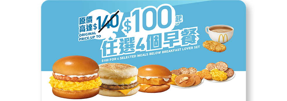 由即日上午11時起,麥當勞「麥麥慳」套票優惠回歸,包括早餐時段的「着數之晨套餐」套票優惠,$100起可嘆4款超值早晨套餐,包括豬柳蛋漢堡、魚柳飽和炒雙蛋火腿飽,另外也可加$5選擇精選早晨套餐,或加$10享用珍寶套餐。