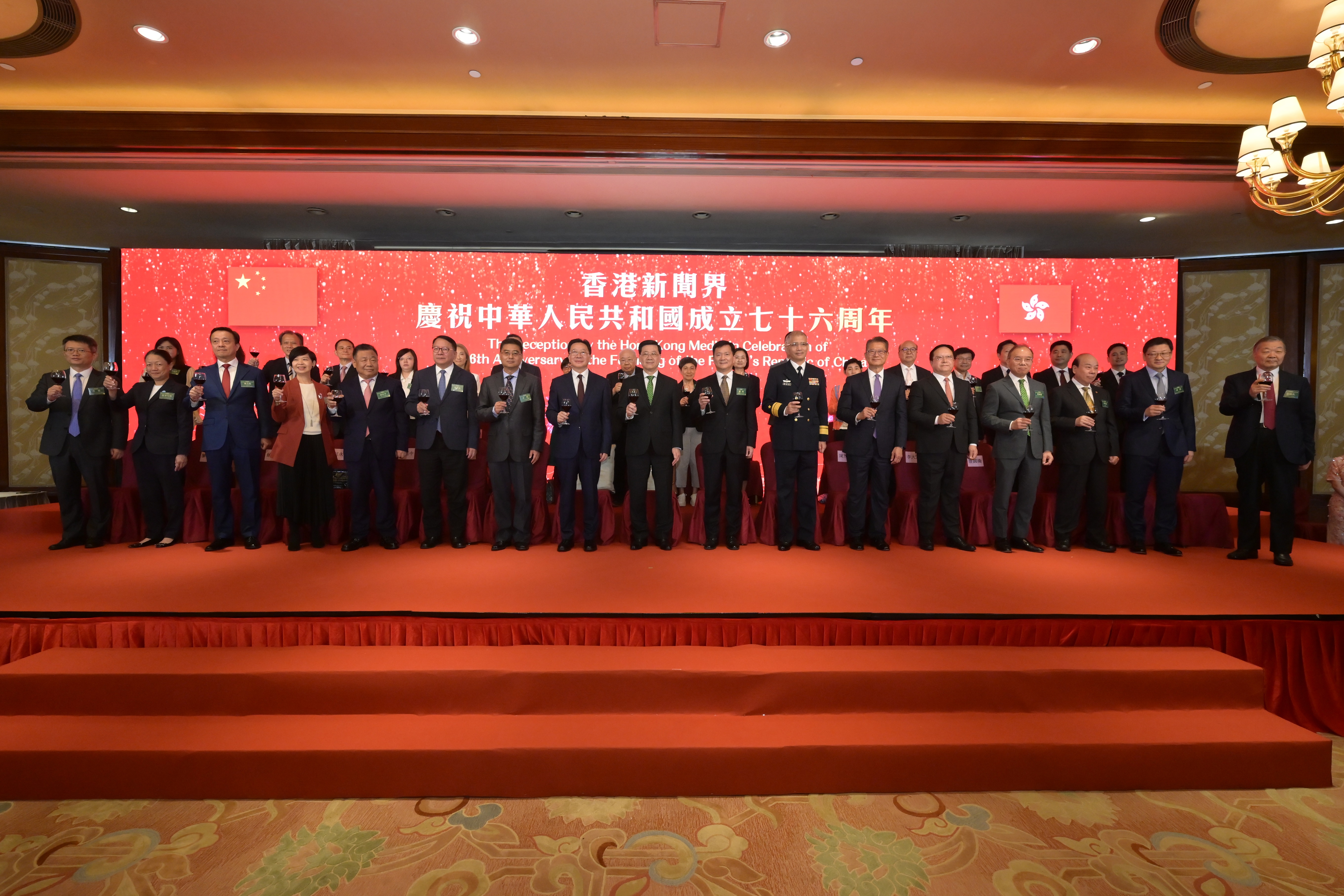 【點新聞報道】香港新聞界慶祝中華人民共和國成立76周年活動,今日(9日)下午在香港港麗酒店舉行,凝聚愛國情懷。行政長官李家超出席活動並致辭表示,期望新聞界用鏡頭捕捉事實,用文字傳遞價值,讓世界各地讀者更深入了解香港的最新發展與潛在機遇,助力經濟發展,推動社會進步。