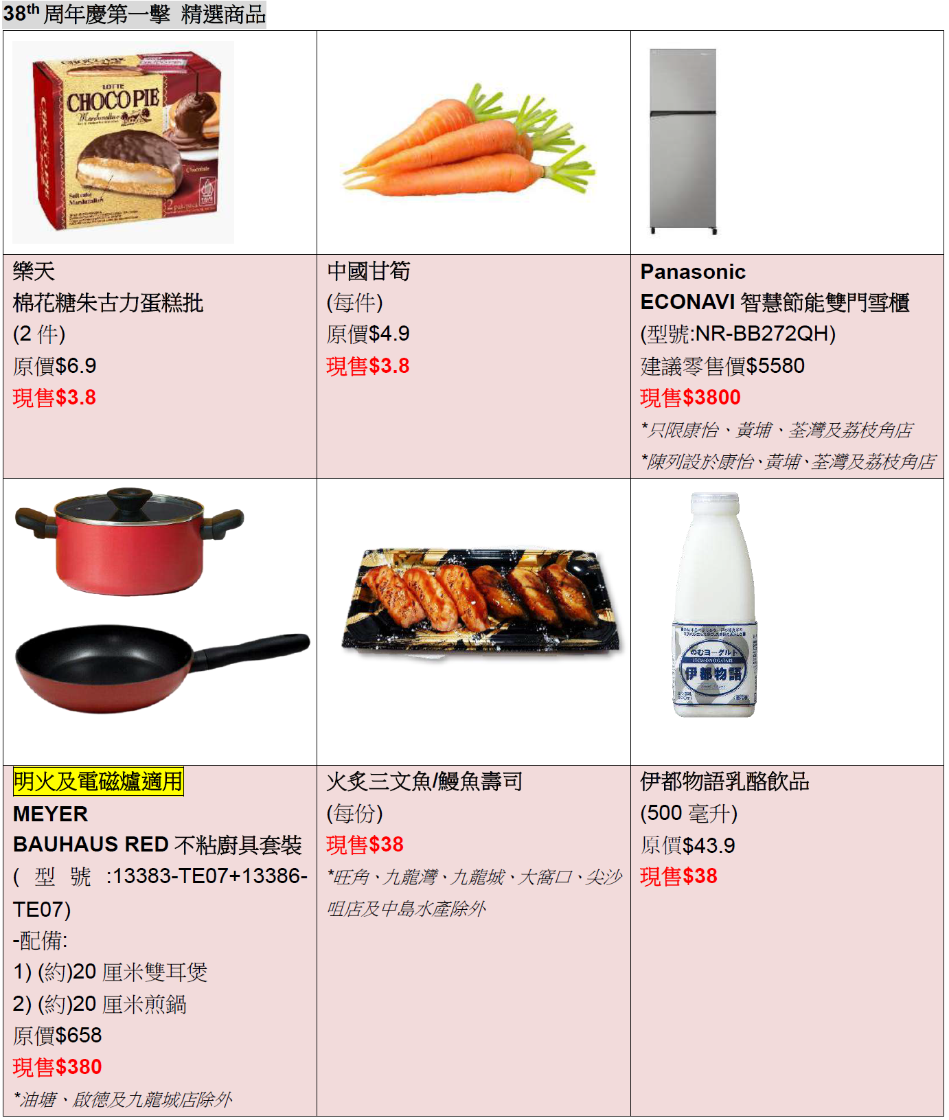 38周年慶第一擊 精選商品如下: