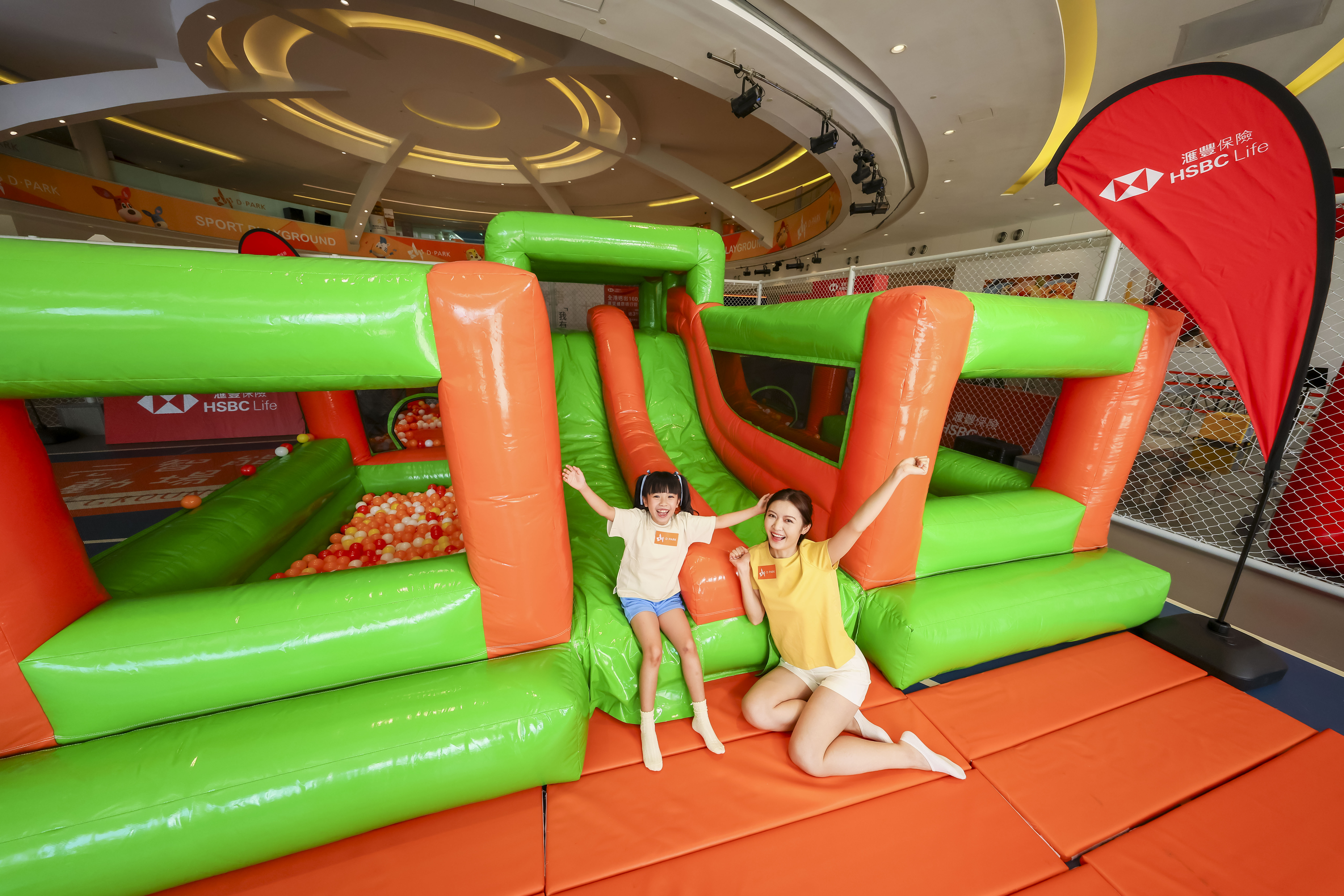 不只如此,D·PARK亦與滙豐保險攜手合作,推出「運動健將動感挑戰遊樂園」,設有多項親子必玩關卡,包括刺激感十足的無人機障礙賽、充氣足球九宮格、以及放電必玩的歡樂城堡等等,讓小朋友盡情玩樂,家長同享歡笑時光!
