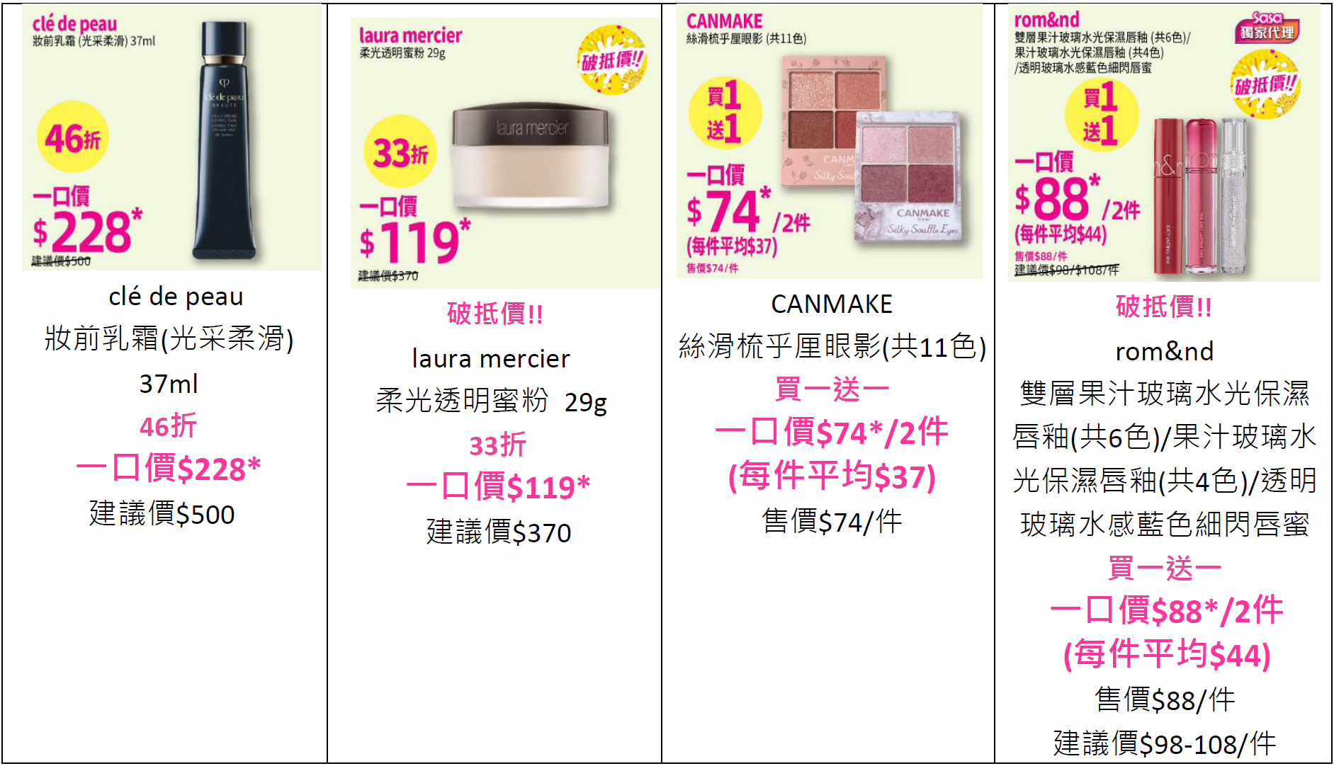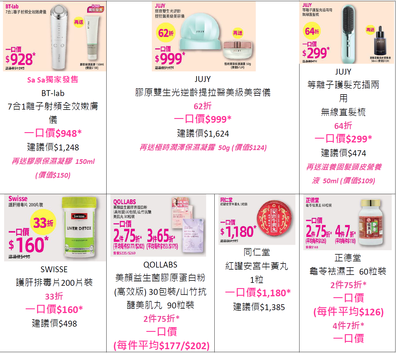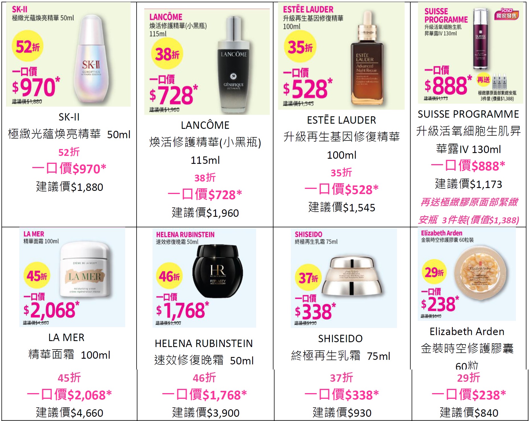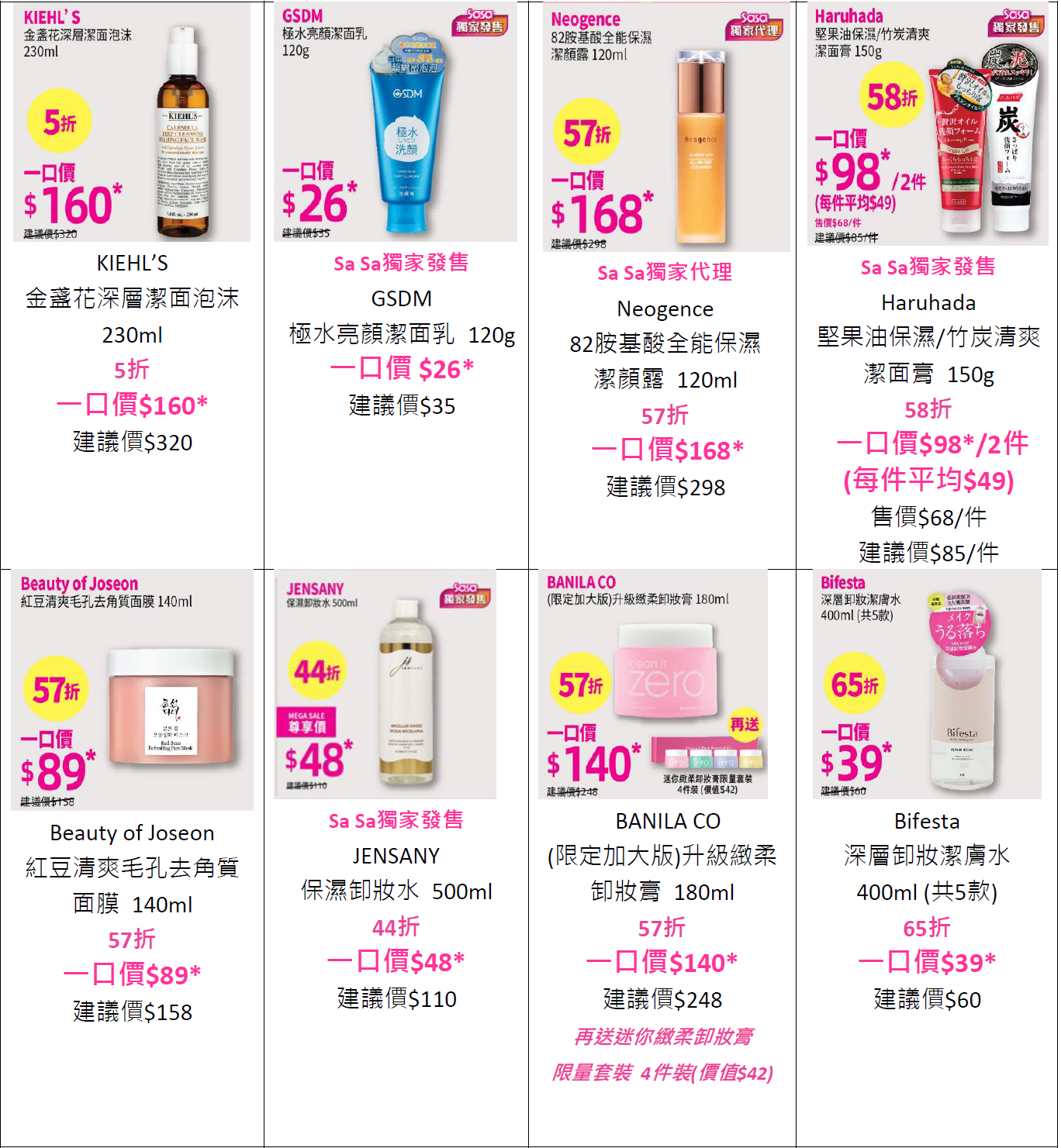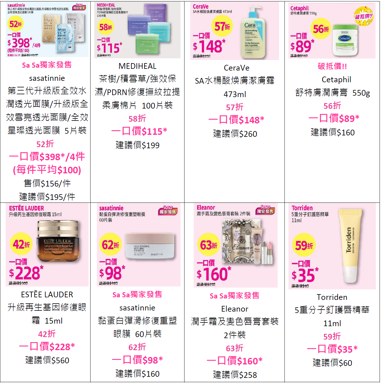 莎莎大折日激減22折起 過百款美妝護膚產品一口價至抵入手