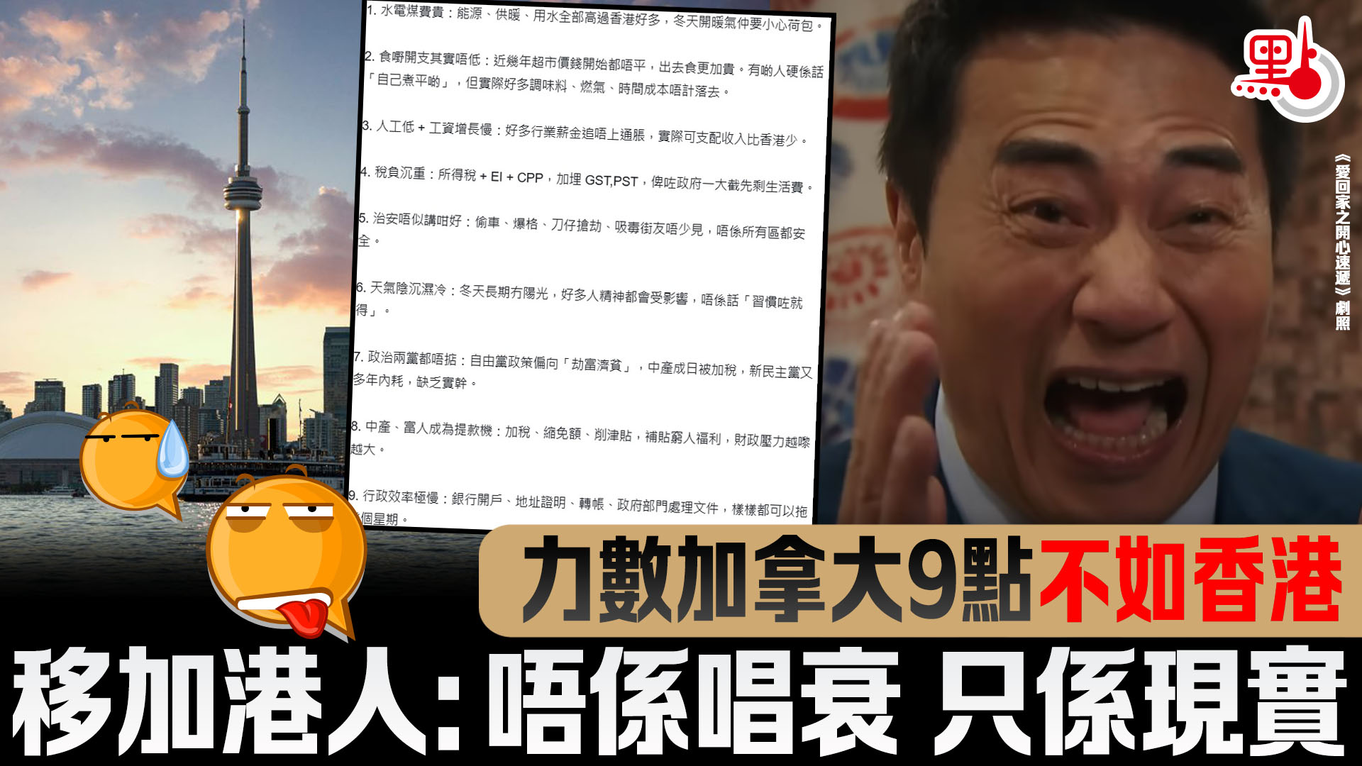 力數加拿大9點不如香港 移加港人:唔係唱衰 只係現實