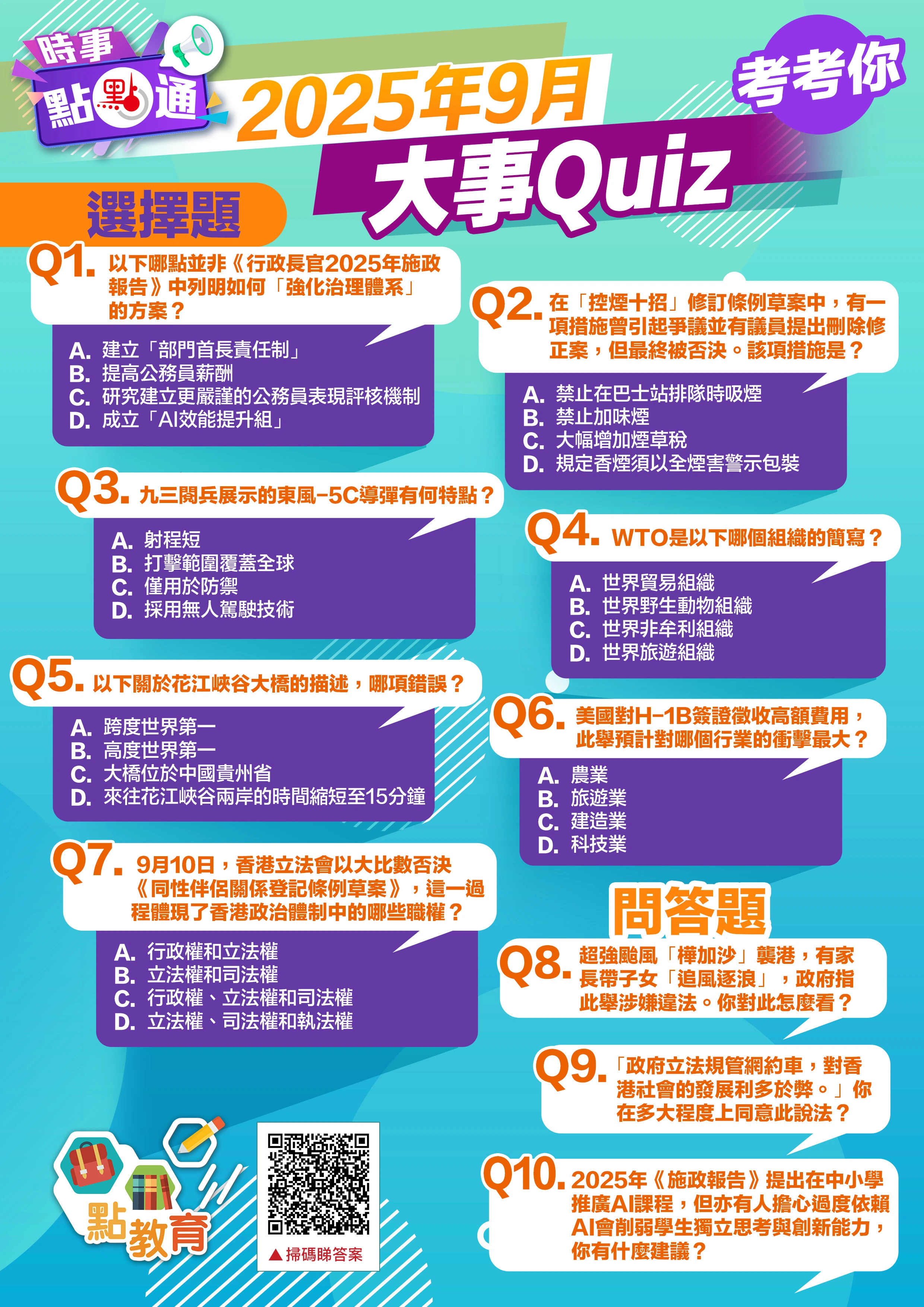【點新聞報道】2025/26學年伊始,點教育為助力香港學生更好地把握全球動態、實現學科知識與社會現實的深度融合,全新推出「時事點點通」欄目。