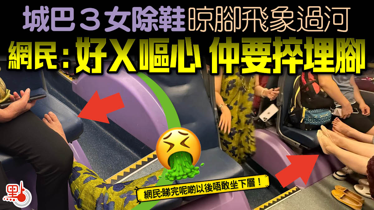 城巴3女除鞋晾腳飛象過河 網民:好X嘔心 仲要捽埋腳