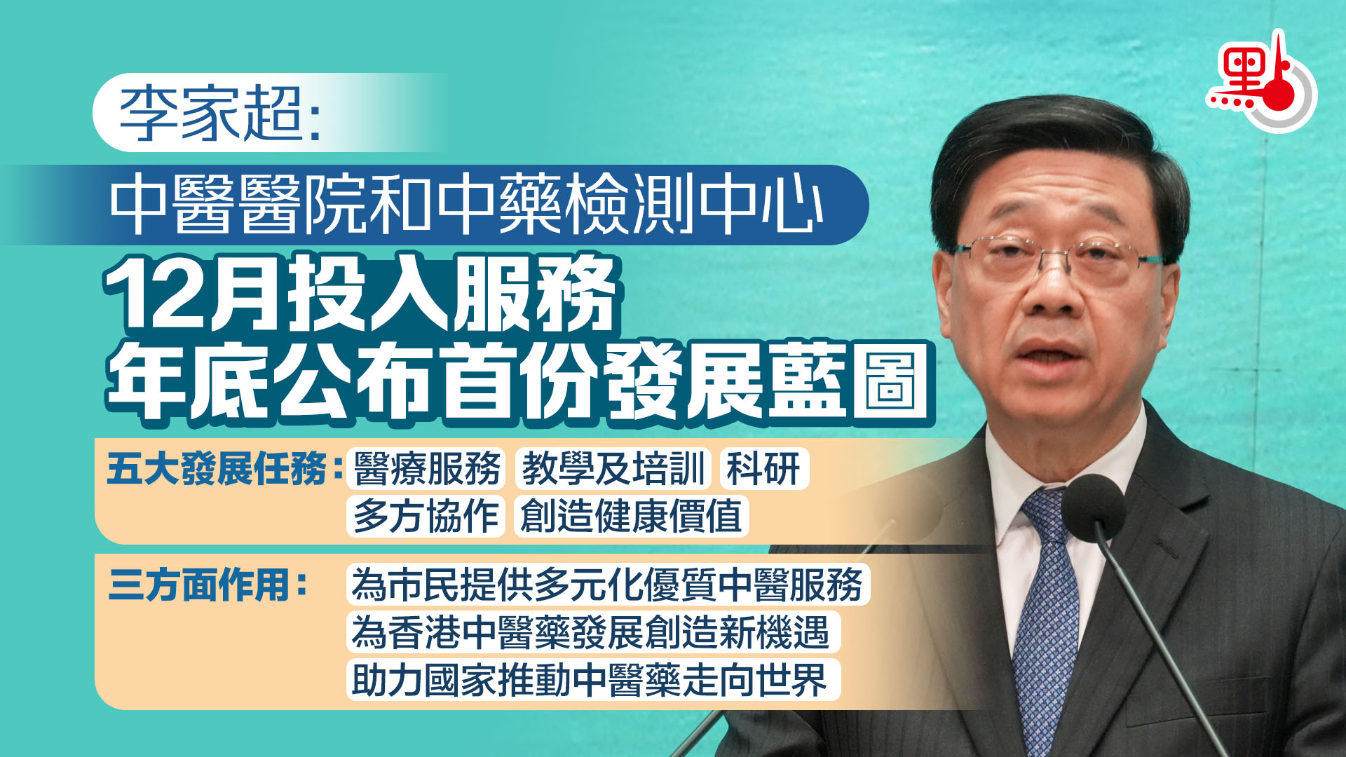 (有片)李家超:中醫醫院和中藥檢測中心12月投入服務 年底公布首份發展藍圖