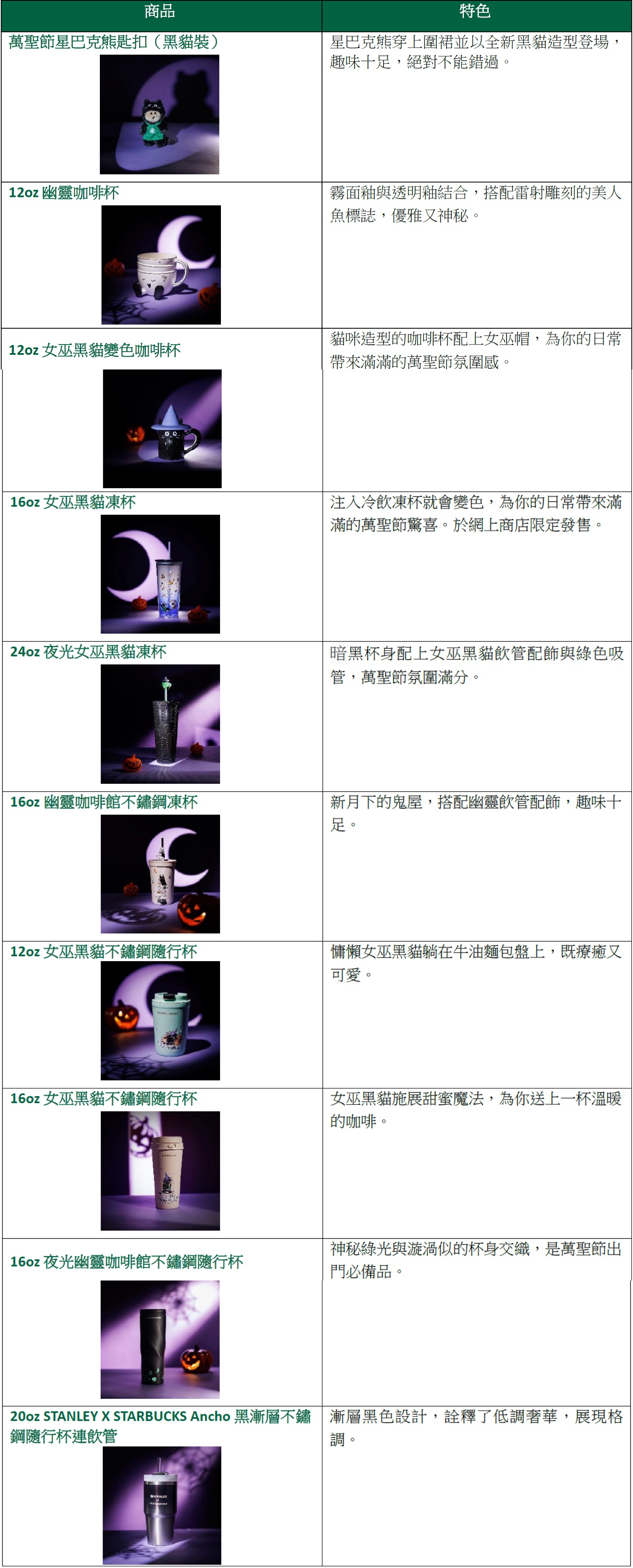 今年萬聖節星巴克為你帶來「Haunted Coffee House」系列,共10款可愛怪誕的商品,由幽靈咖啡杯到黑貓星巴克熊匙扣,包括女巫黑貓變色咖啡杯、幽靈咖啡館凍杯、夜光幽靈咖啡館不鏽鋼隨行杯等,為你的咖啡時光添上一抹魔法。