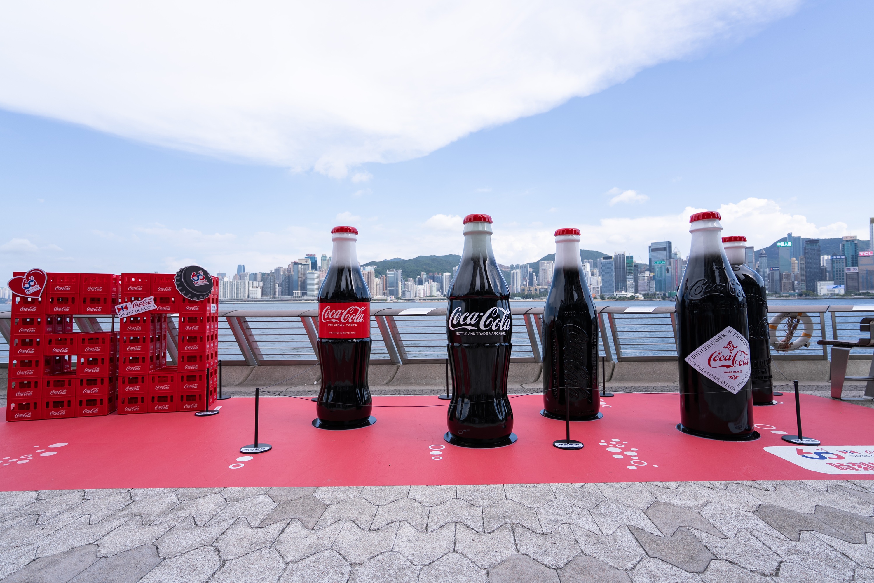 即日起至10月31日,香港太古可口可樂將與人氣景點星光大道合作,打造巨型可口可樂樽打卡位,5枝高達2米的可口可樂瓶將矗立於維多利亞港岸旁,大家開心打卡之餘更可享雙重換領獎賞:活動期間於星光大道旁指定美食亭、銷售亭或指定自動販賣機購買2款指定的香港可口可樂飲品或套餐,即可獲得精美可口可樂紀念品一份;於指定周末時間在巨型可口可樂樽前拍下靚相並上載至社交媒體,加上指定標籤,即可換領神秘禮物一份!禮物數量有限,換完即止,大家切勿錯過!