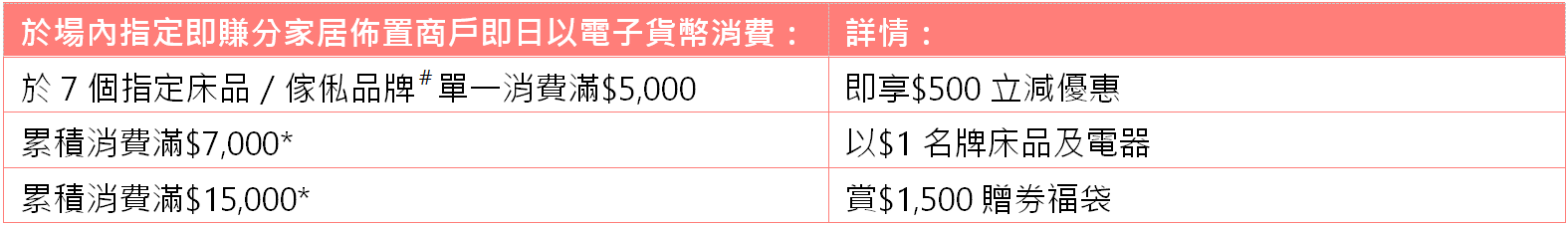 地點:荃灣廣場L3顧客服務中心($500立減優惠於指定商戶內換領)