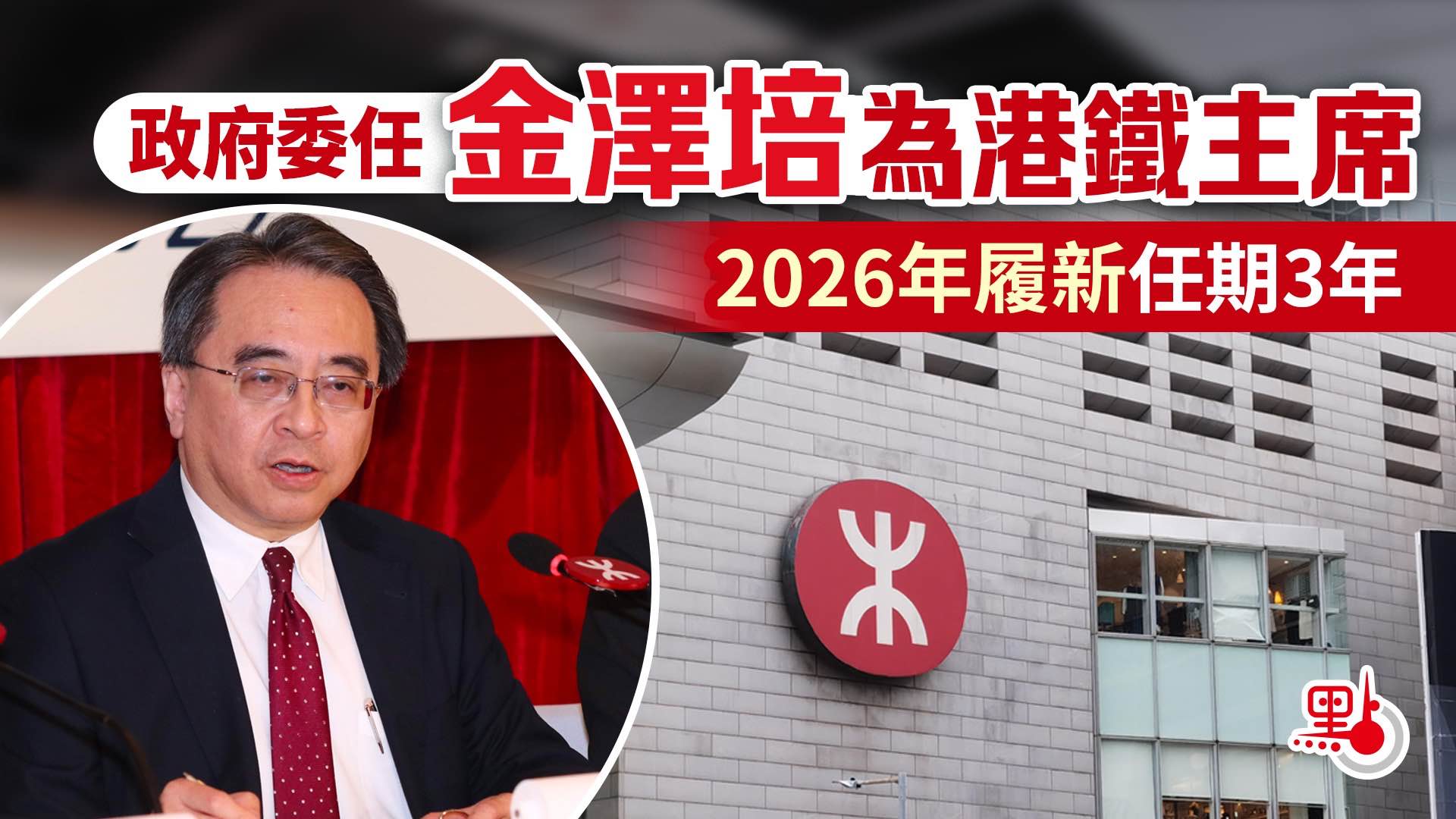 港鐵公司歡迎政府今日宣布委任金澤培為港鐵董事局主席,任期三年,於2026年1月1日起生效。