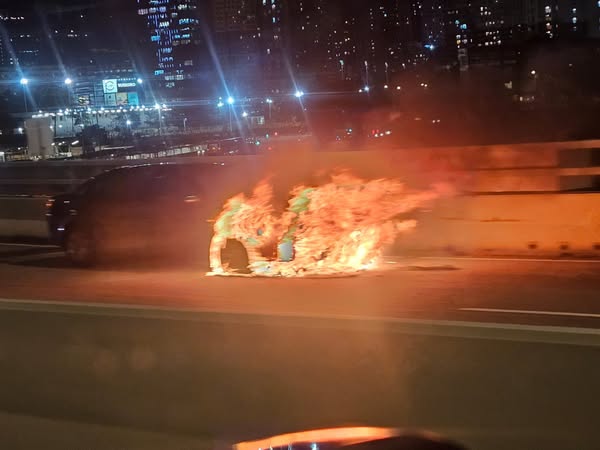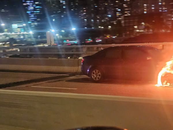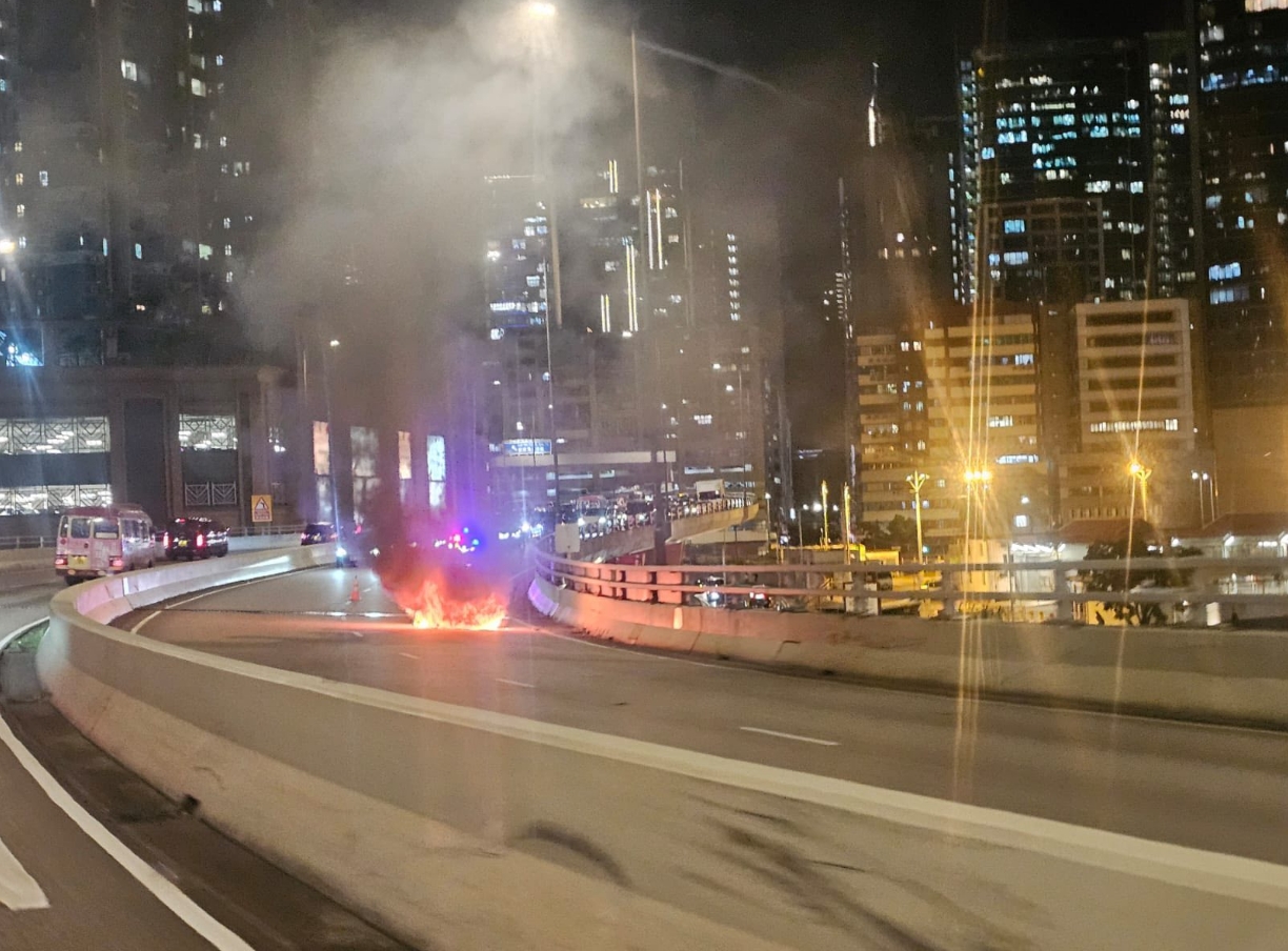 (有片)西九龍走廊私家車自焚 女司機跳車逃生交通受阻