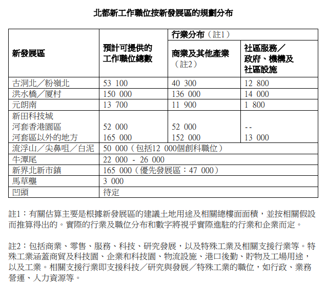 甯漢豪繼指,在就業和創業方面,北都採用「產業帶動」的發展模式,為不同產業帶來龐大的發展空間,創造大量優質且多元化的職位。此外,流浮山將定位為數碼科技樞紐,將利用先進科技,推動新經濟與傳統經濟融合,並成為孕育青年人才和初創企業的搖籃。北都內的新發展區正處於不同的規劃及建設階段,按規劃階段的假設估計將創造超過50萬個新工作職位,有關職位的規劃分布估計載於附件。