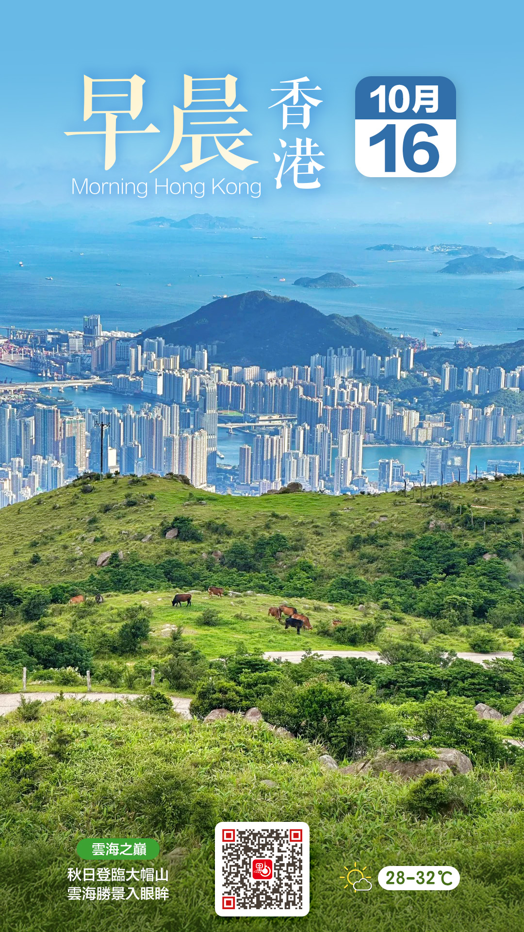 【點新聞報道】今日(16日)又到周四,很快又到打工仔最愛的周末,想到這裏,是不是前往公司的路上都突然元氣滿滿?秋意漸濃,正是登高望遠的好時節,緊接的周末與即將來臨的重陽節假期,不如約上親朋好友,來一場說走就走的登山之旅吧!