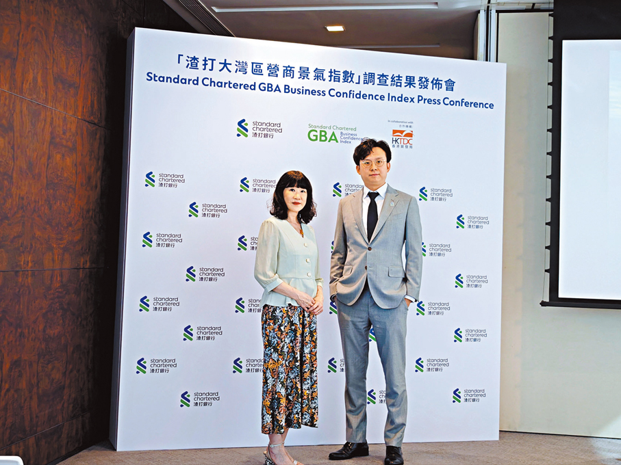 渣打大灣區營商景氣指數是透過對大灣區的1,000多家公司的季度調查,最新的第三季景氣指數顯示,區內企業第二季度的營商活動受美國「解放日」衝擊略為回落後,在第三季度重拾活力。調查指,第二季美國正式實施對等關稅,同時再延長與中國的關稅休戰期90天至11月,並分別與多個主要貿易夥伴達成貿易協議,隨着關稅陰霾消退,整體外部環境相對穩定,使到第三季商業信心比上一季度回升。