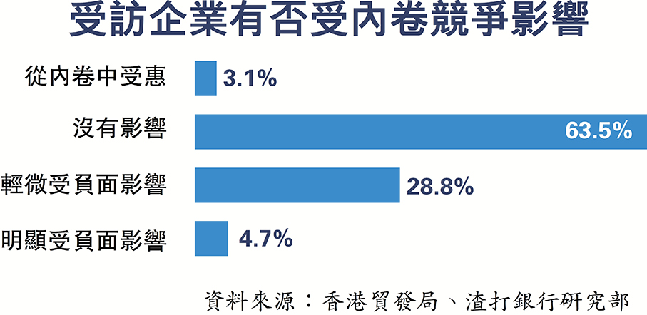 由於調查是在8月初至9月初進行,其時並未反映中美最新一輪貿易限制措施。渣打大中華區經濟師陳冠霖昨日承認,貿易不確定性有機會令營商氣氛再趨審慎。考慮到外圍不確定性增加及中國內地的「內卷」挑戰,相信企業進一步分散業務的趨勢將會延續,此與調查結果顯示大灣區企業採取開拓海外市場作為其中一個應對潛在挑戰的策略脗合。貿發局相信,企業仍繼續提前付貨,電腦和半導體產品則繼續獲豁免徵收額外關稅。隨着中美持續對話,加上兩國領導人有可能舉行峰會,均有助市場預期回穩。