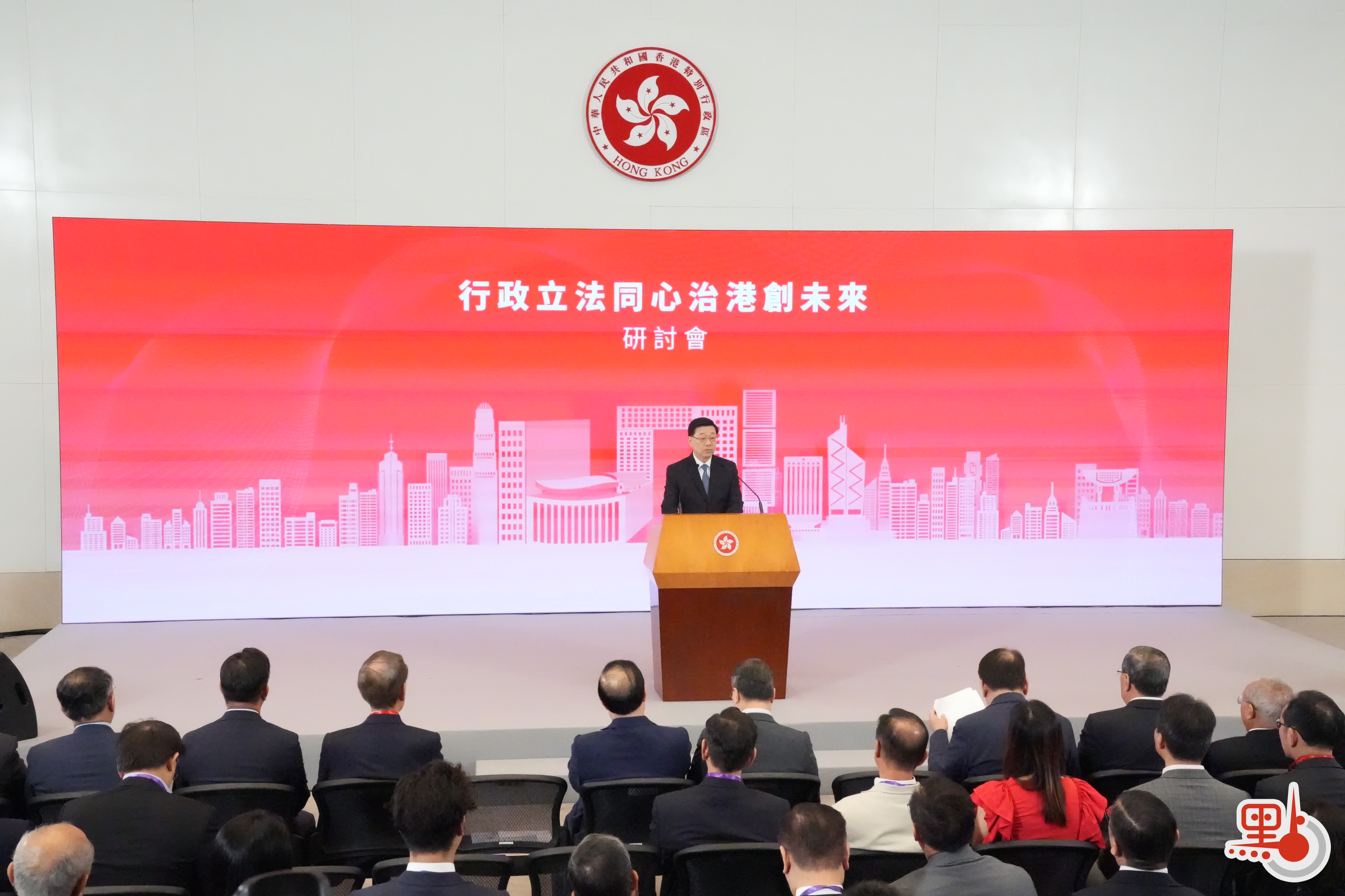 行政長官李家超在研討會作主旨發言,政務司司長陳國基、立法會主席梁君彥、香港再出發大聯盟秘書長譚耀宗,以及全國港澳研究會顧問劉兆佳教授作專題演講。