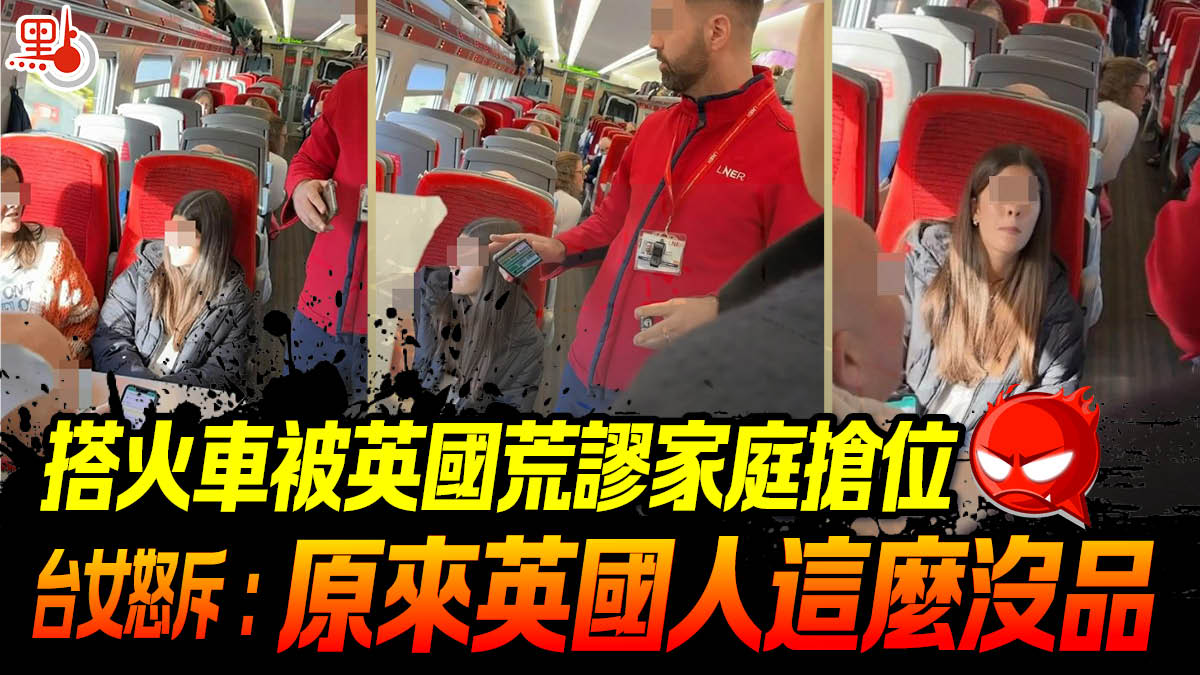 【點新聞報道】「不知道原來英國人這麼沒品!」有台灣女在社交平台發布影片,指她一行人到英國乘搭從蘇格蘭到倫敦的火車時,有一家英國人坐了她們的位置,即使站務人員到場對方仍不讓回座位,一直佔着位子到終點站,直斥「This family is so ridiculous(這家人太荒謬了)!」