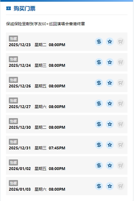 【點新聞報道】今年12月,「歌神」張學友將重返紅館演出8場《張學友60+巡迴演唱會 香港 終章》,與樂迷共度聖誕節及除夕,迎接2026年的來臨,透過自己的音樂與樂迷歡度佳節。信用卡優先發售已於日前展開,訂票反應熱烈,所有門票已經售罄。公開發售則於今日(16日)上午10時正式開始,大批粉絲準時撲飛,不少人仍然未能成功購票,據城市售票網顯示,門票已火速售罄,絕對是一票難求。
