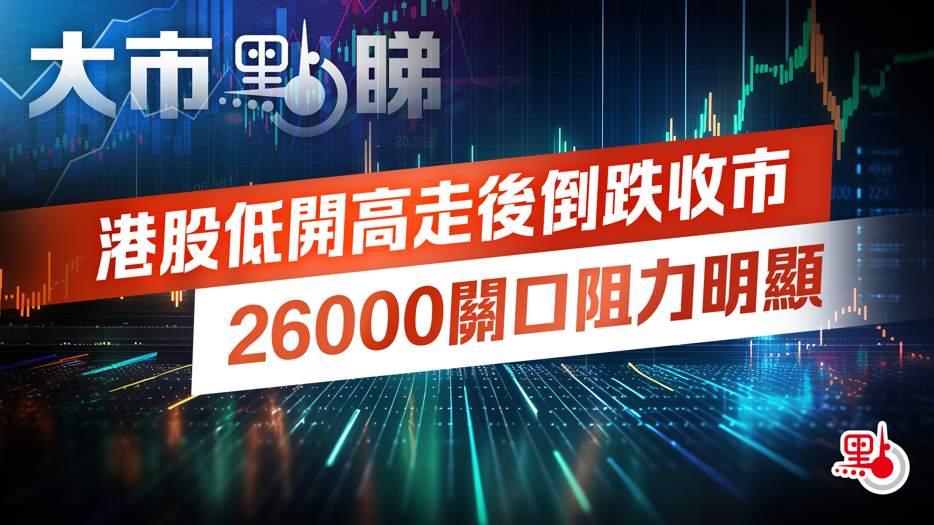 大市點睇|港股低開高走後倒跌收市 26000關口阻力明顯