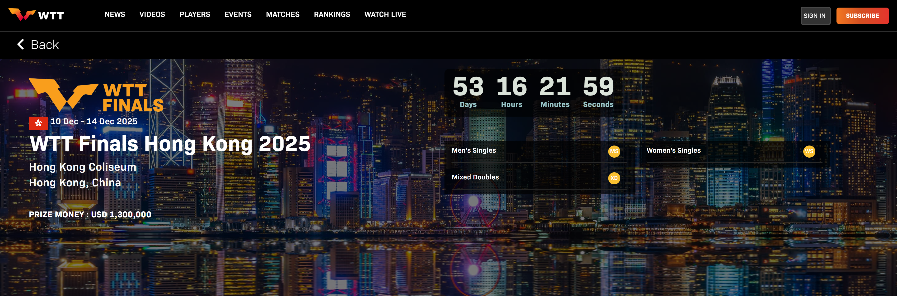 (有片)WTT香港總決賽賽程一覽 12月決戰香江!