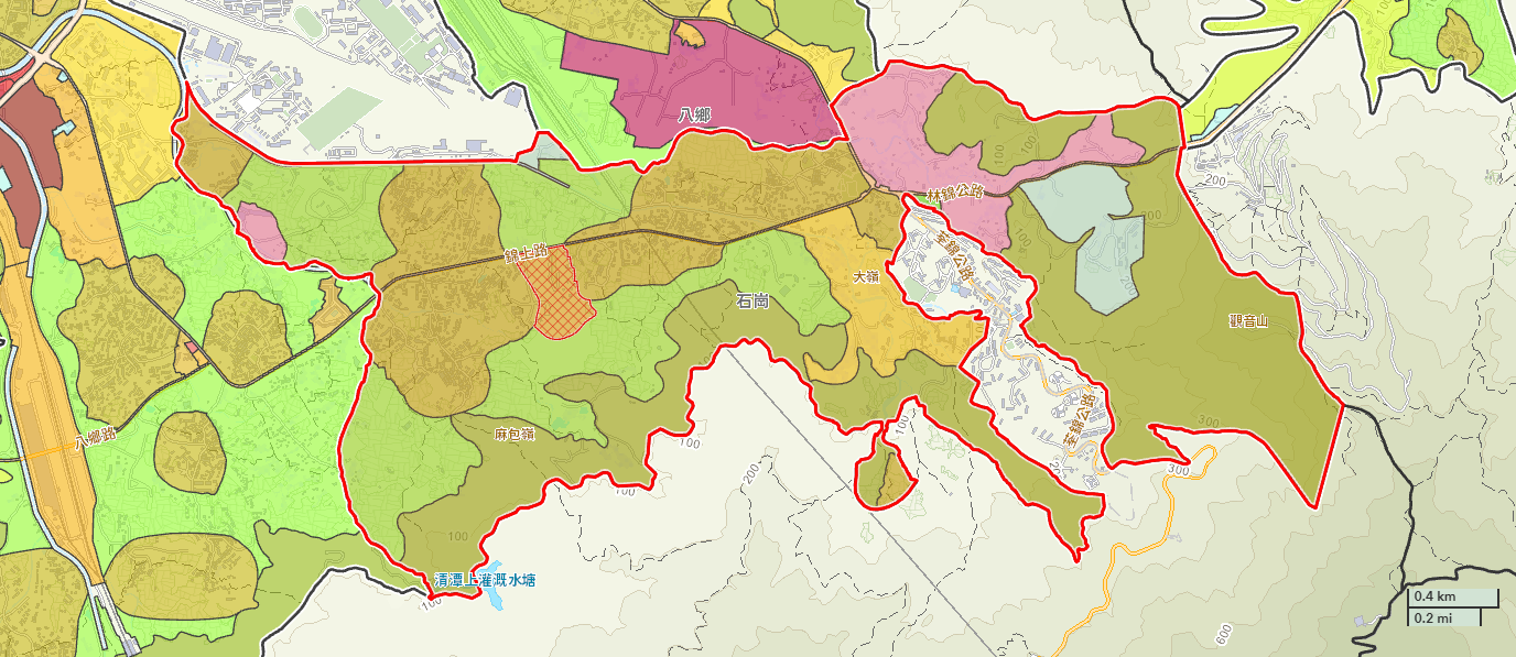 石崗分區計劃大綱核准圖的修訂項目主要涉及把位於錦上路以南及黎屋村以西的一幅用地由「住宅(丁類)」地帶改劃為「住宅(丙類)」地帶。