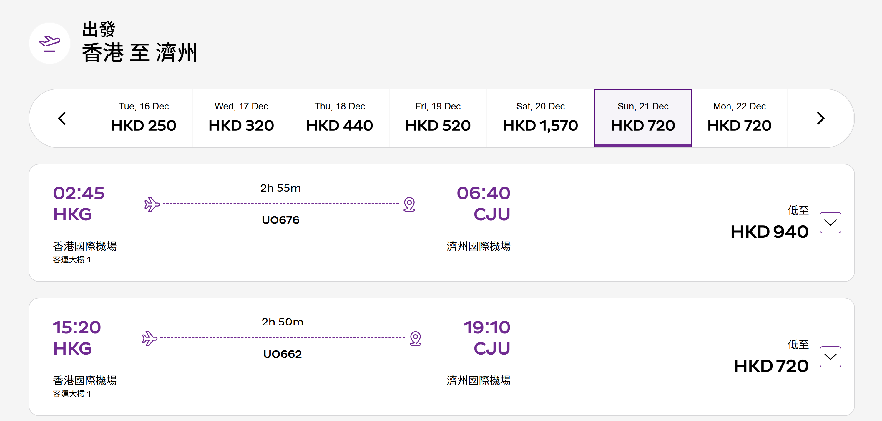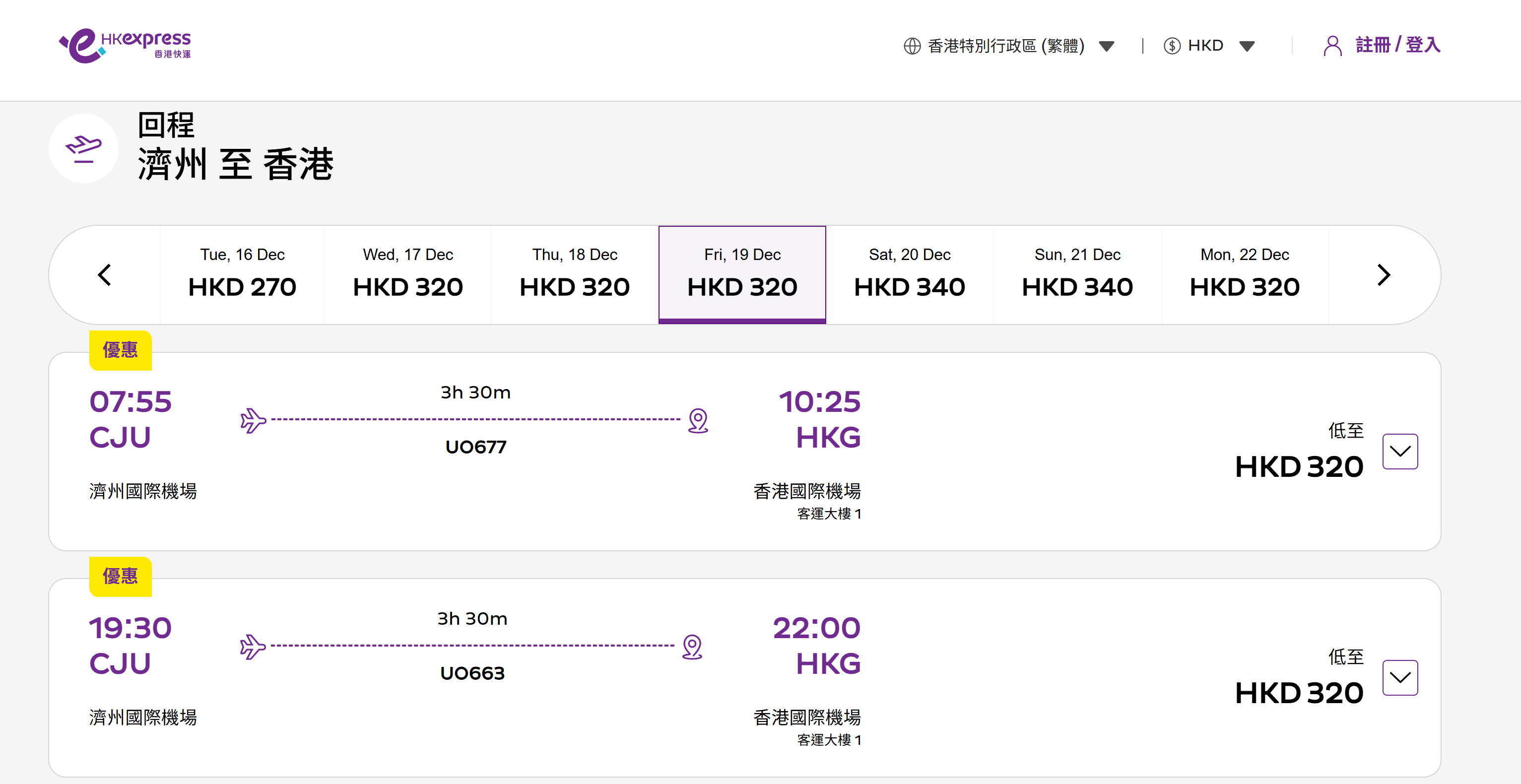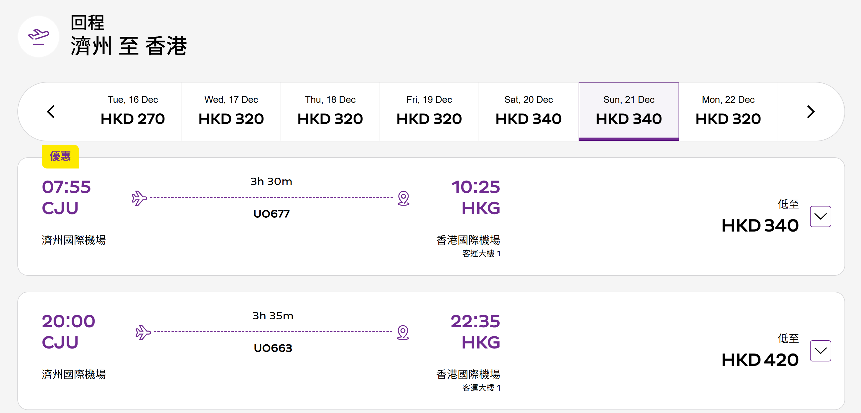 香港⇋濟州島增班!12·19起迎香港下午/濟州島晚上起飛航班