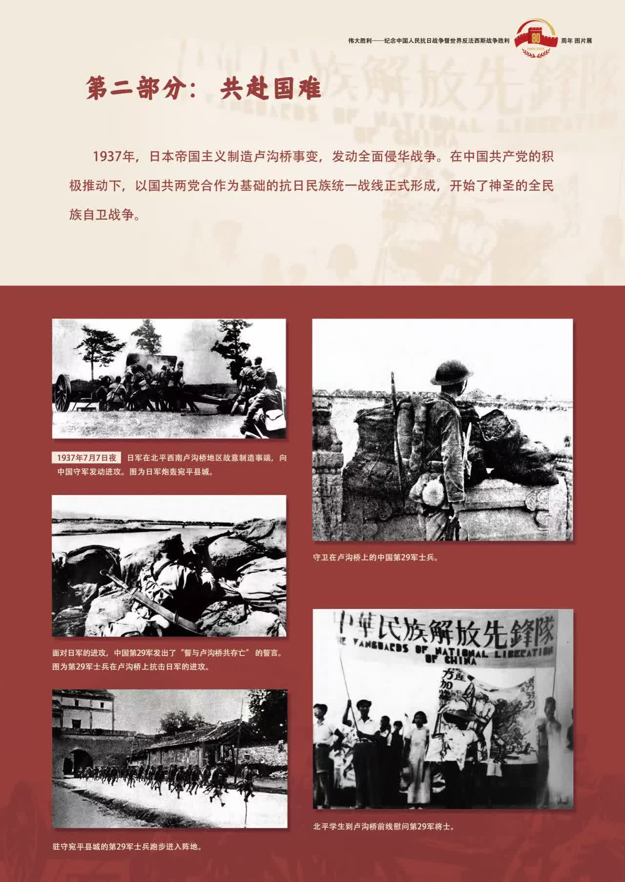 是次展覽獲香港與澳門多間學校機構、社會團體及內地黃埔同學會組織參與協辦,今日(18日)假香港大學黃麗松堂舉行開幕禮。展出的歷史圖片配以40餘幅主題展板,分為「民族危機」「共赴國難」「中流砥柱」「日軍暴行」「浴血疆場」「同心協力」「國際支援」及「歷史勝利」八大篇章,讓參觀者了解全民族抗戰的歷史。在為期三周的巡迴展覽後,將陸續走進香港中小學,結合線下「講歷史進校園」活動,以深化歷史教育。
