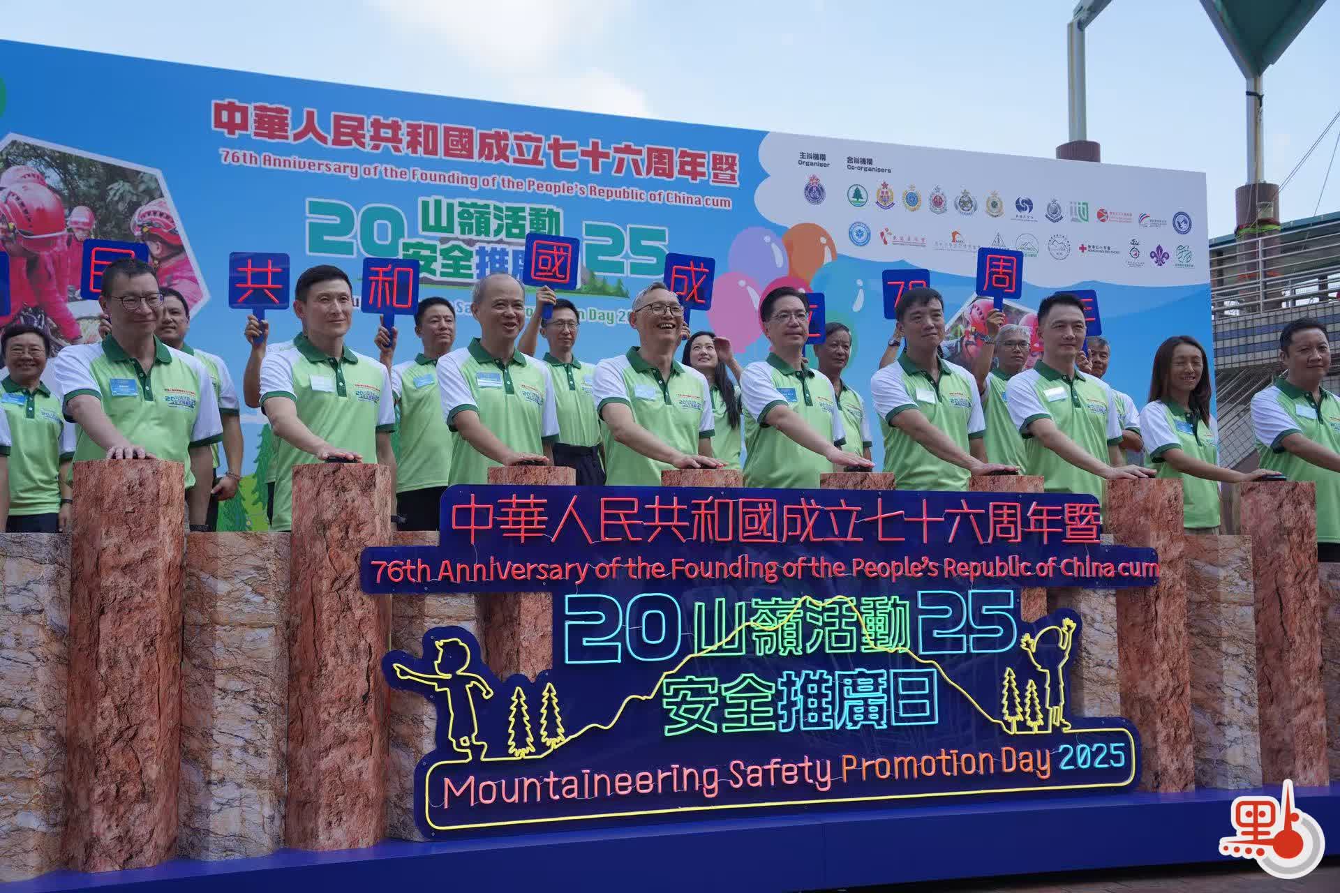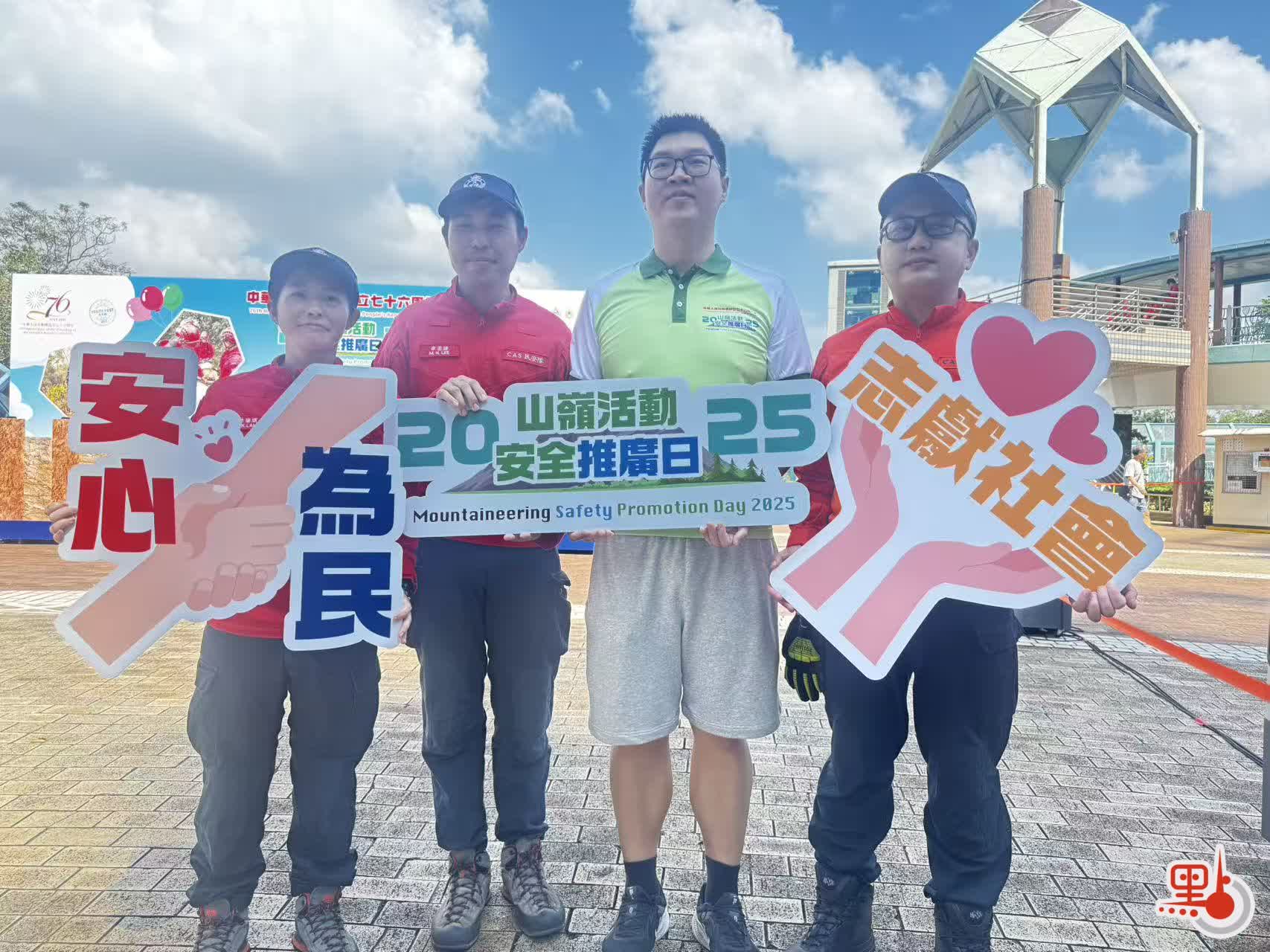 民安隊今日(19日)在鰂魚涌公園舉辦「中華人民共和國成立76周年暨2025山嶺活動安全推廣日」,提醒市民注意山嶺活動安全,宣傳山嶺安全知識。民安隊亦在場進行了成人隊員及少年團招募工作。