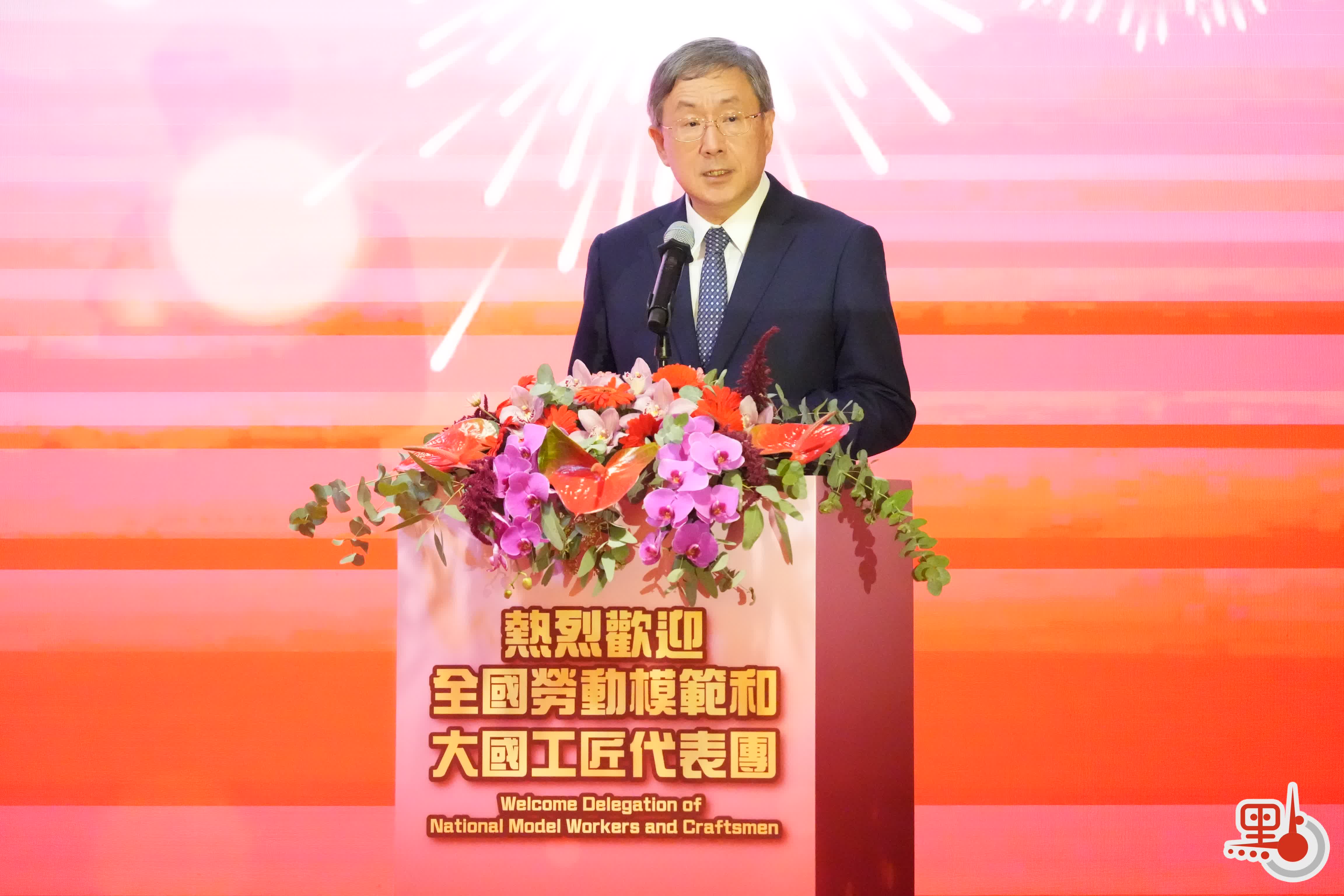 卓永興在致辭中表示,代表團成員在各領域以百折不撓的精神攻堅克難、守正創新,為國家繁榮和社會進步作出卓越貢獻。此次訪問體現國家對香港的重視與愛護。卓永興指出,勞動力是推進歷史的主體,勞工為社會經濟發展的基礎。特區政府及社會各界高度重視勞工價值,舉辦各類活動及比賽,嘉許在工藝及專業領域表現突出的僱員。他期望透過此次訪問,增強港人的民族自豪感與愛國情懷,激發各行業僱員敬業樂業、迎變求變,並鼓勵學員及學生在技藝上追求卓越、勇於追夢。他強調,獅子山精神與勞模精神、勞動精神和工匠精神一脈相承,香港憑藉背靠祖國、聯通世界的優勢,必能跨越挑戰,再創高峰。
