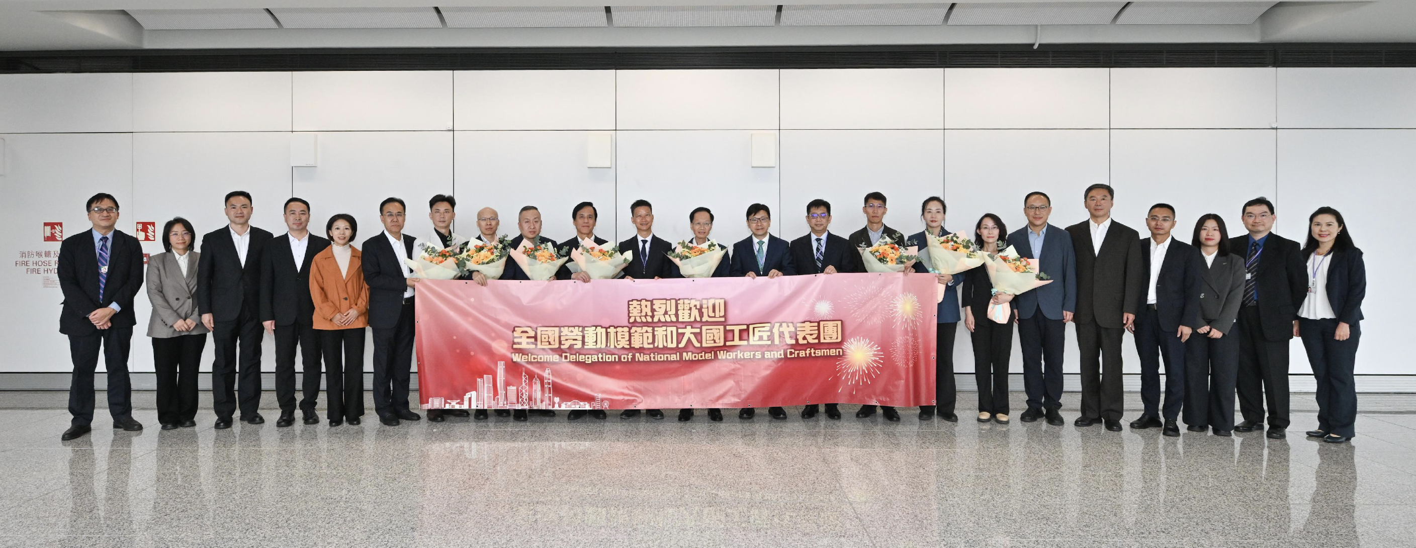 代表團下午抵港後出席由香港特區政府舉行的歡迎儀式。政務司副司長卓永興在儀式上致辭時表示,衷心感謝中央港澳工作辦公室(中央港澳辦)和國務院港澳事務辦公室(國務院港澳辦)的全力支持,促成代表團這次的訪問,充分體現國家對香港的重視和愛護,為廣大香港勞工打氣及為社會注入正能量。特區政府及社會各界非常重視勞工的價值,期望通過代表團這次訪港活動,增強港人的民族自豪感與愛國情懷,以及激發各行業的僱員在工作上迎變求變、敬業樂業。