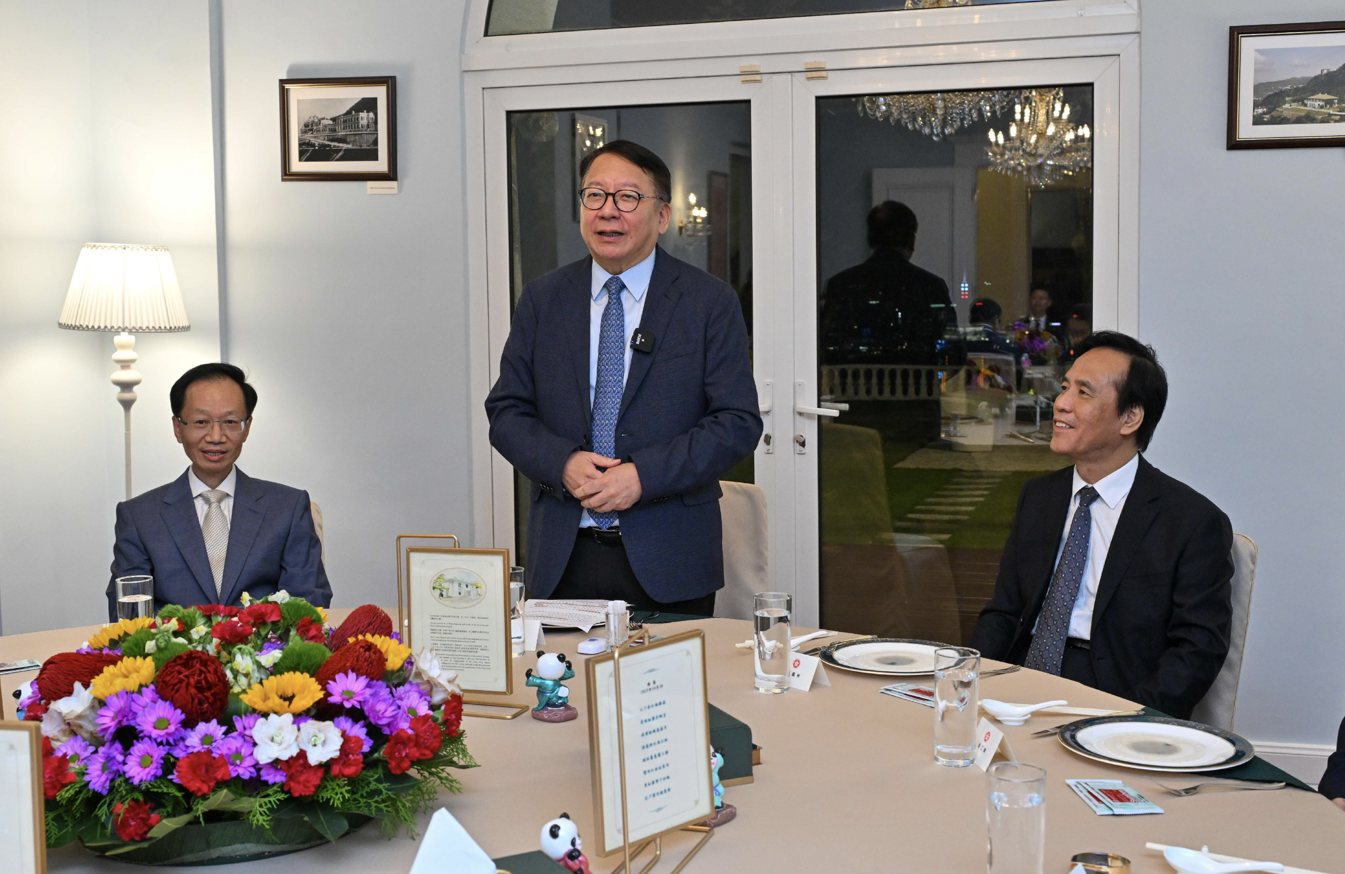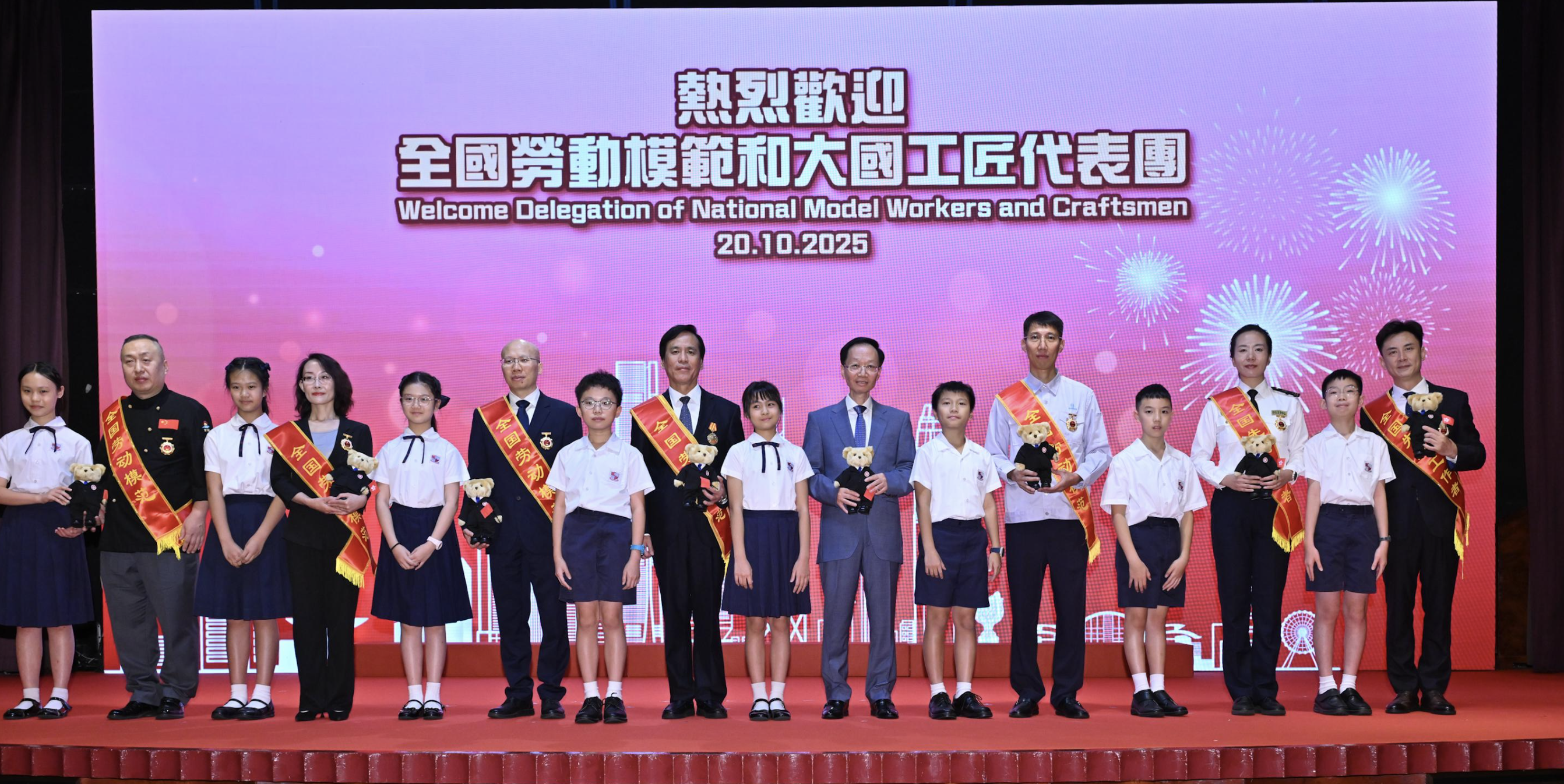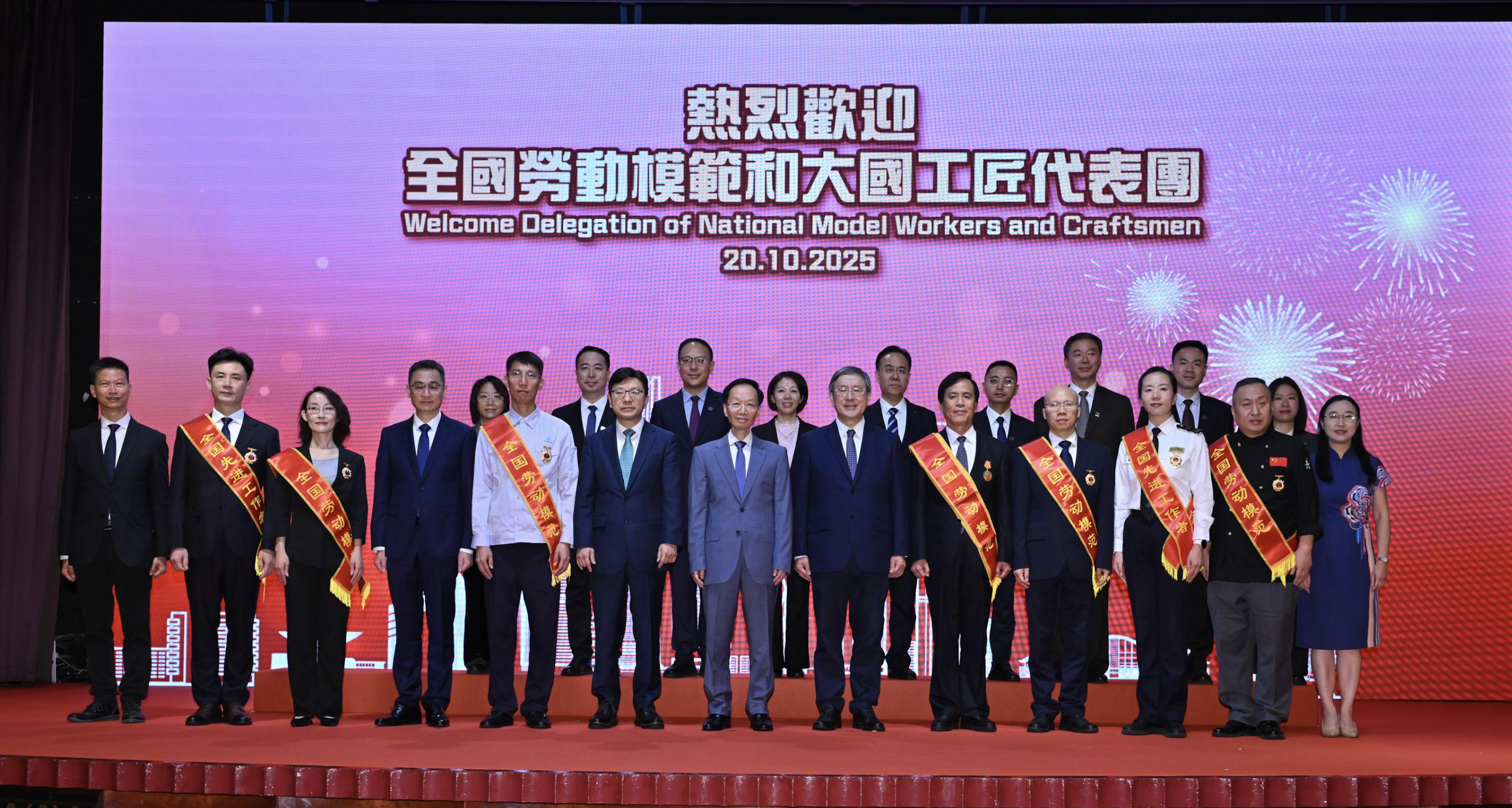 代表團傍晚出席由政務司司長陳國基主持的歡迎晚宴。陳國基表示,代表團到訪香港,對促進市民認識全國勞動模範、大國工匠和先進工作者的精神風貌、優秀素質及卓越貢獻意義重大,香港特區政府熱烈歡迎代表團訪港。他深信代表團成員的奮鬥事跡與卓越成就,將激勵香港社會各界繼續追求卓越、勇於追夢,並進一步凝聚社會力量,共同為推動國家發展、增進人民福祉貢獻力量。