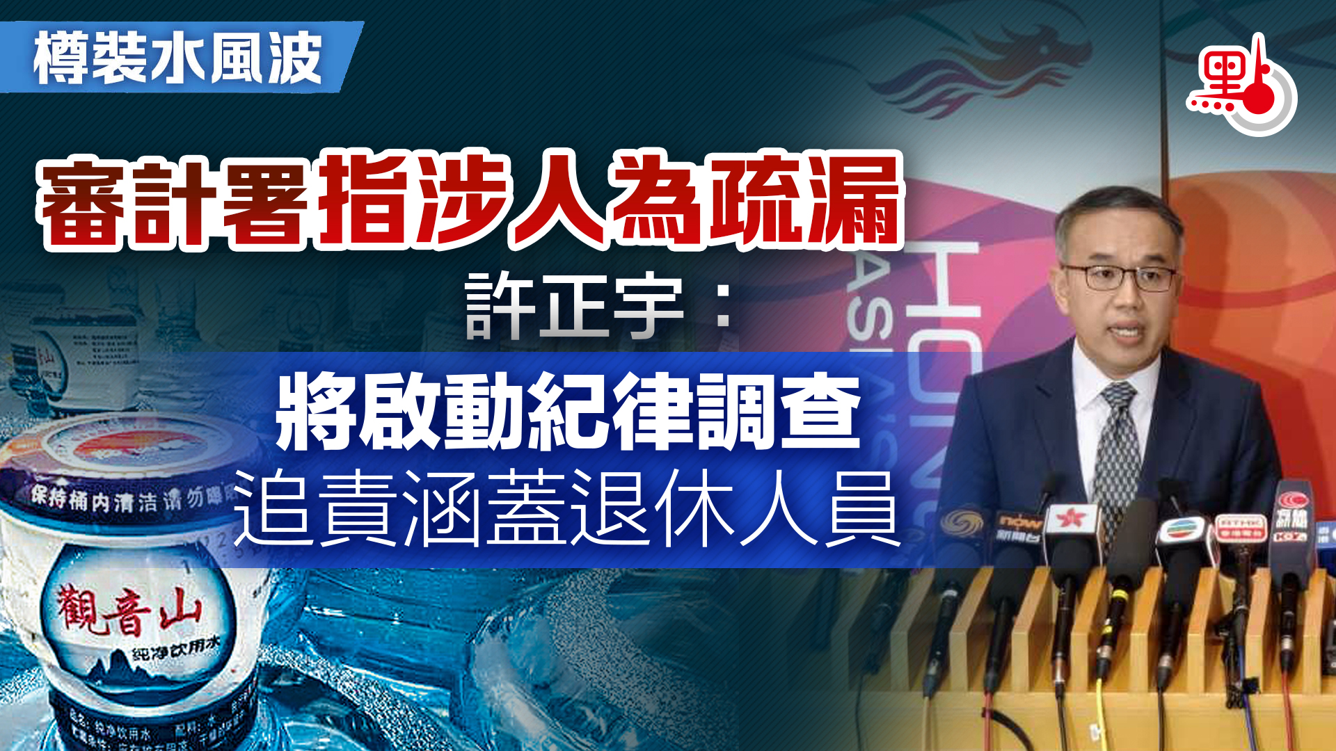 【點新聞報道】審計署今日(20日)公布樽裝水事件的審查報告,指物流署在此事件中存在人為疏忽。財經事務及庫務局局長許正宇今日於政府總部會見傳媒,表示將啟動紀律調查,無論涉及人員退休與否都將嚴肅追責。本港各界人士表示,政府重視今次事件和整個採購流程,有助恢復社會和市民的信心,建議政府對新承辦商應該加倍開展盡職審查,加強制度保障與查核。