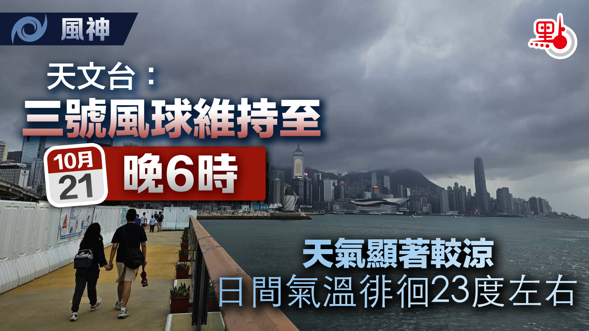 風神|天文台:三號風球維持至今晚6時 天氣顯著較涼 日間氣溫徘徊23度左右