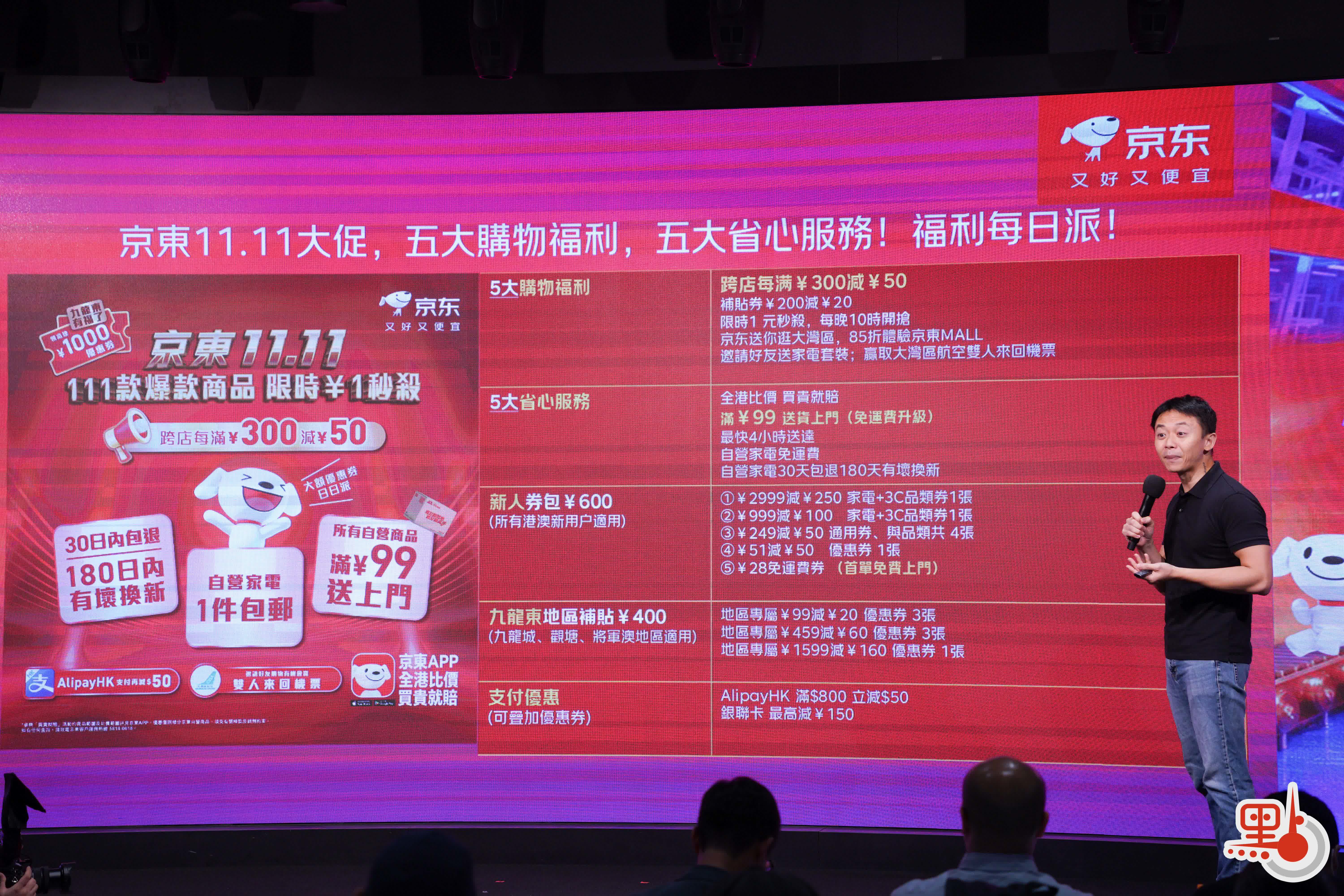 【點新聞報道】京東集團今日(21日)上午舉行「京東港澳11·11 又好又便宜」新聞發布會,會上宣布此次11·11多項優惠重點,包括「99元全港包郵上門」「地區補貼計劃」等。消費者於港澳地區購買自營商品訂單金額滿99元人民幣,即可享受免費送貨上門服務,包括離島地區。