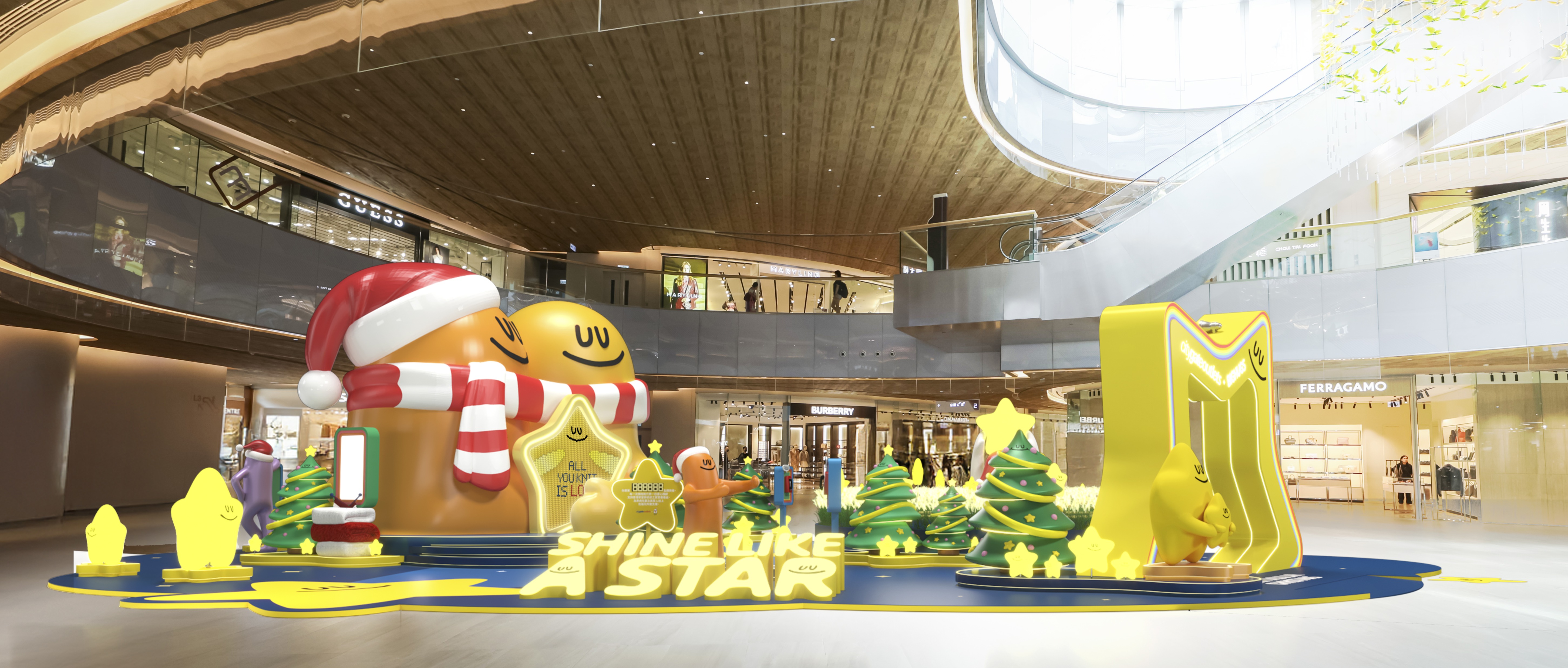 朗豪坊精心策劃連串精彩活動,率先登場的是「薯誕百貨」,商場4樓通天廣場將化身奢華百貨,穿過標誌性的玻璃旋轉門,紅金色系的華麗大堂與璀璨燈飾便映入眼簾,濃厚的節日氣息瀰漫每個角落。12隻造型獨特的毛毛Noodoll已準備就緒,隱藏於各處打卡點等待你來發掘,陪伴你度過一個難忘聖誕。