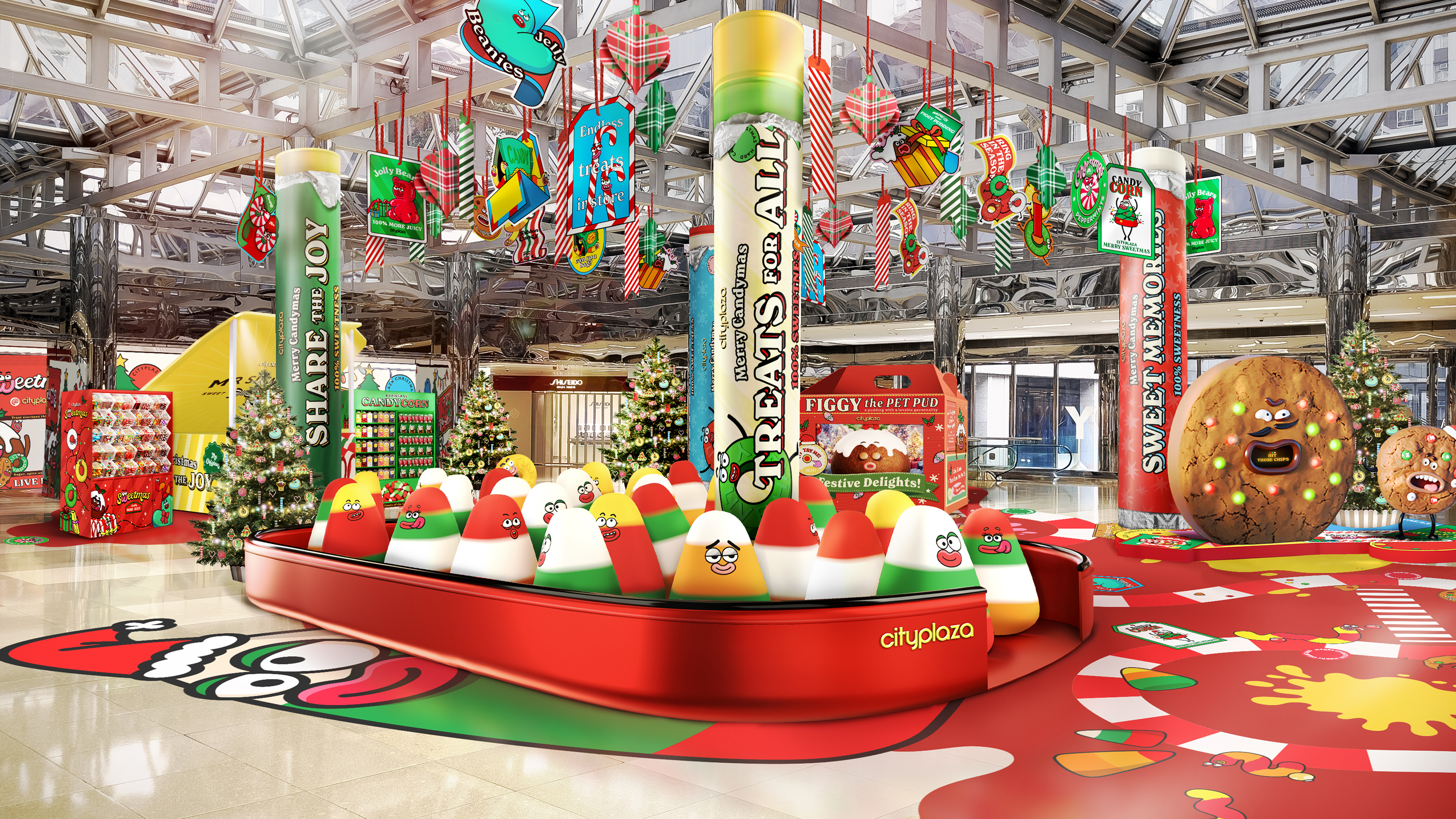 2025年11月14日起至2026年1月4日,太古城中心邀大家共享普天同慶的Merry Sweetmas!本次聖誕節由糖果兵團呈現,包括平安夜曲奇、士的糖、粟米糖、泡泡糖等,和你拆開最大型的甜蜜聖誕!走進商場中庭,活潑Q彈的熊仔笑笑糖及巨型士的糖已等待多時,引領各位進入中橋的甜蜜總部,先後探訪「聖誕布甸禮盒屋」、「粟米糖迷宮」、「曲奇快趣挑戰」,別忘了到訪「快閃甜甜店」,店內有多達400款特色糖果,來挑選最令你甜入心的節日糖果,在Sweetmas盡情享用糖漬般的甜蜜盛宴!